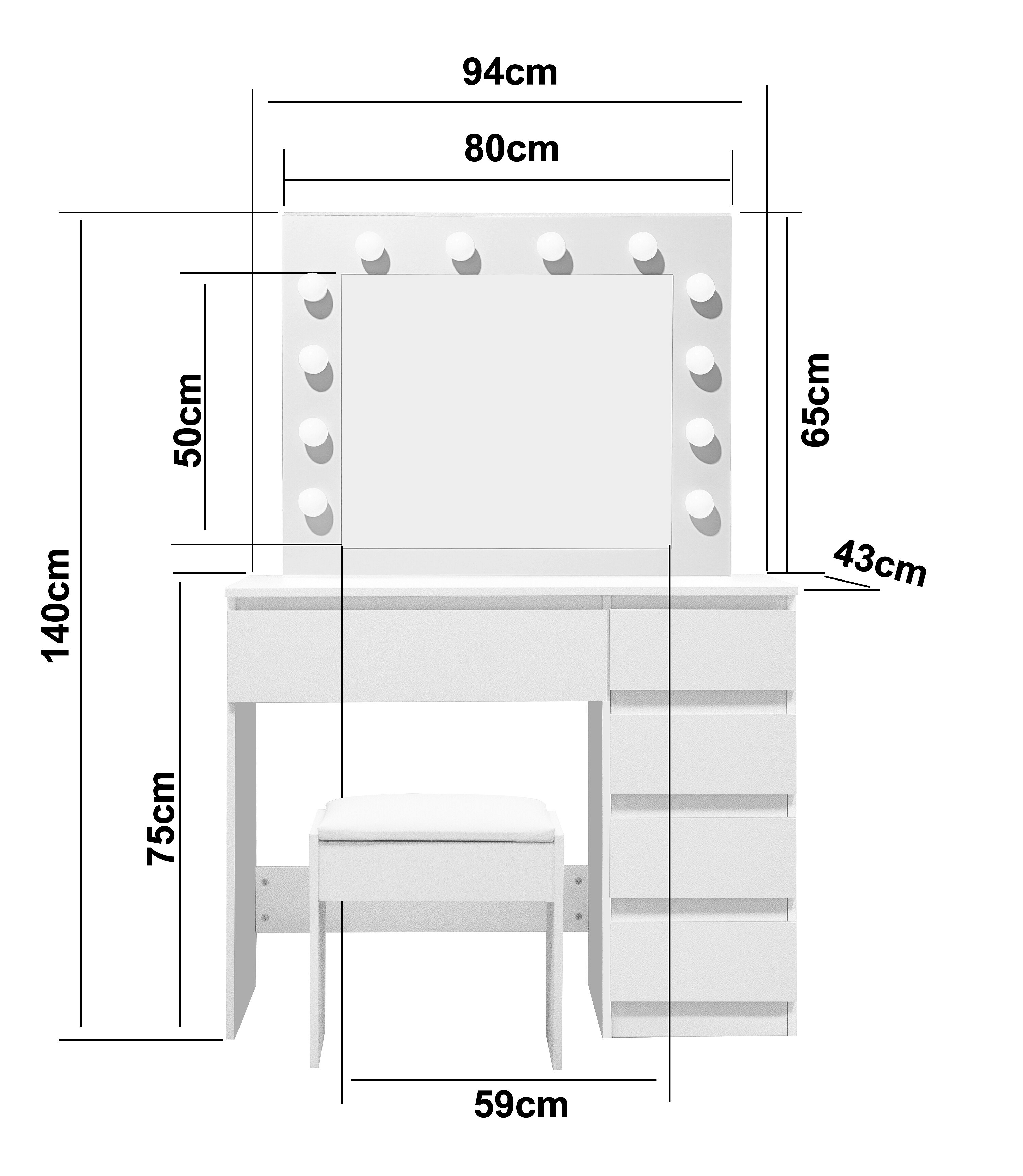 Určitě oceníte i 5 prostorné zásuvky, v kterých si pohodlně odložíte všechny svoje kosmetické pomůcky, šperky a ostatní doplňky.