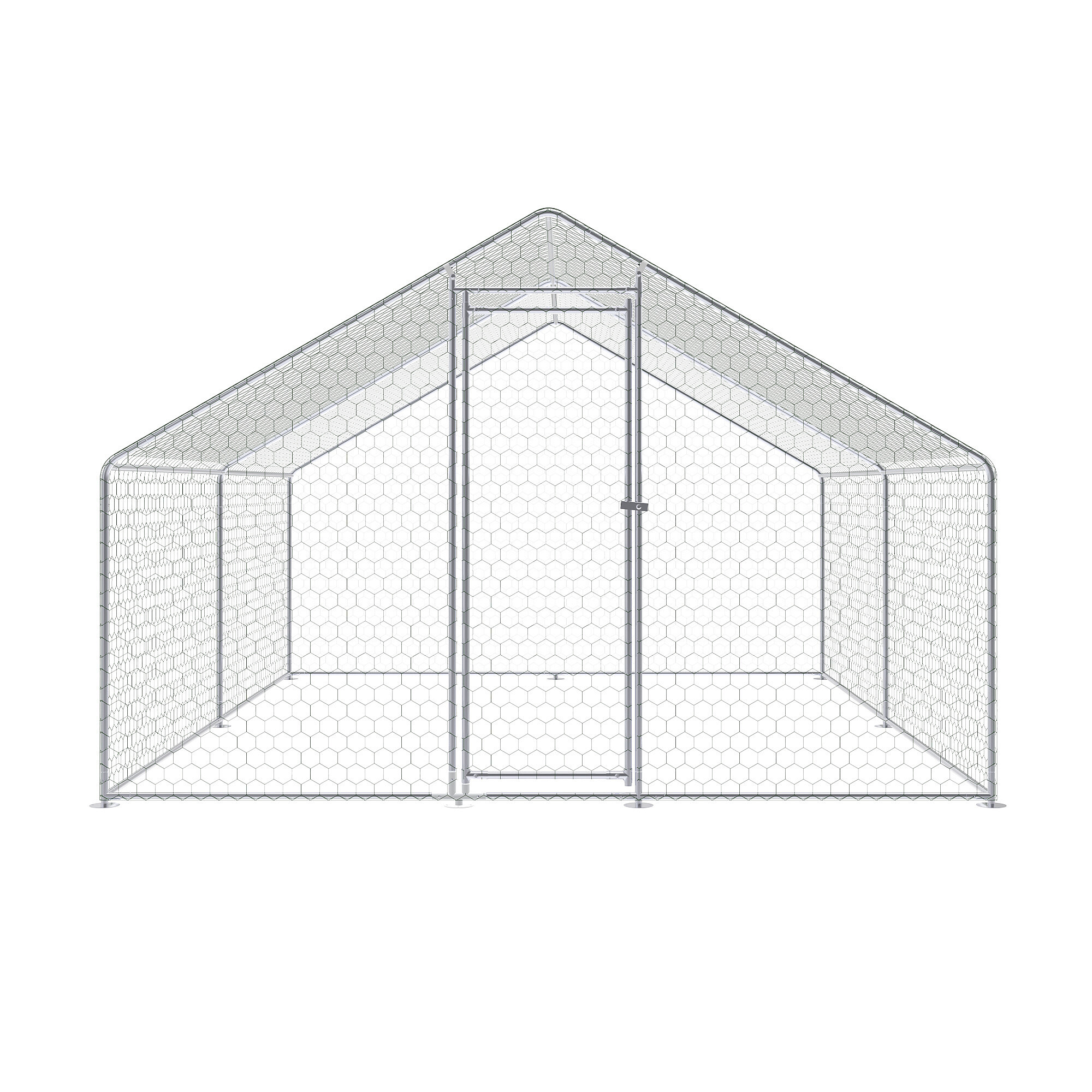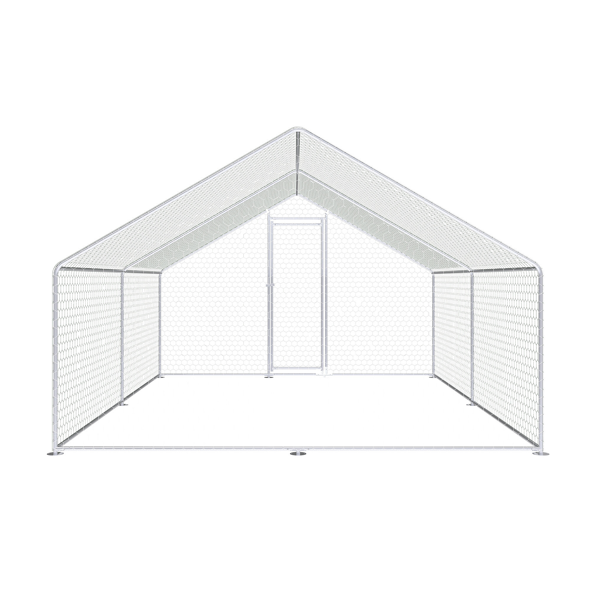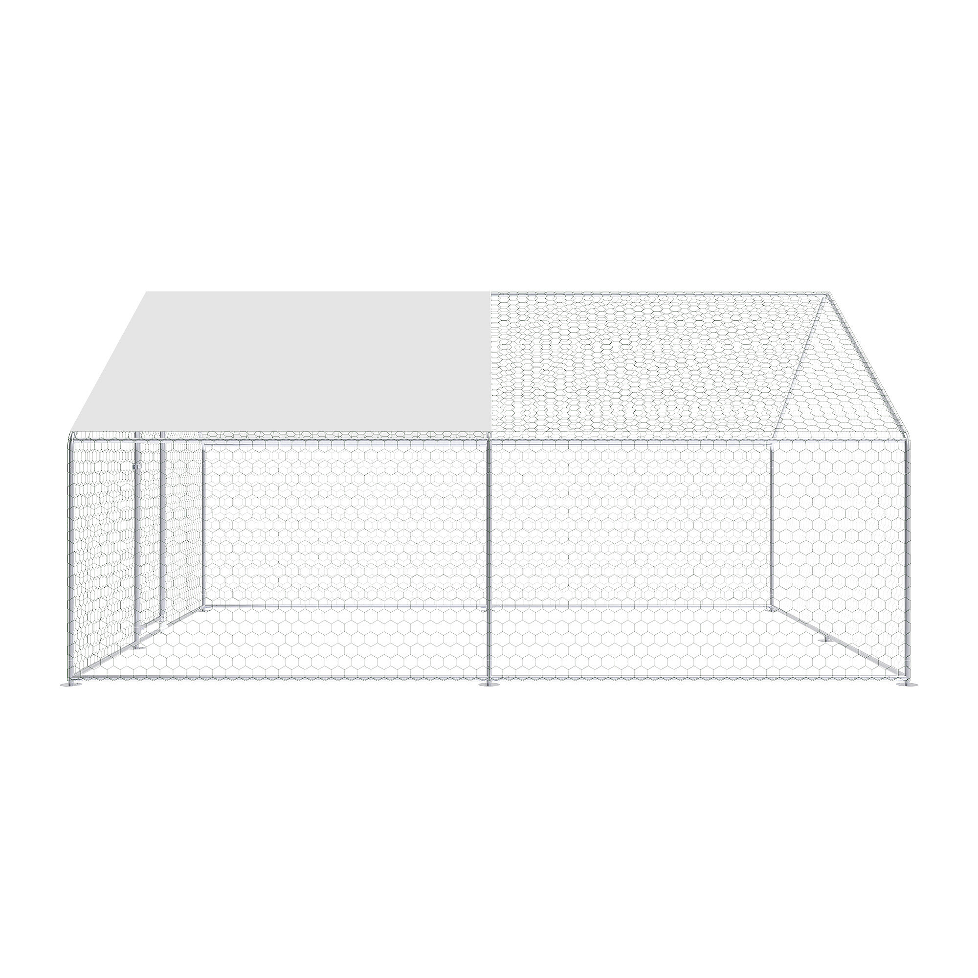 Výběh pro drůbež je vyroben z pevné konstrukce z pozinkované oceli, která je odolná vůči korozi a vhodná pro dlouhodobé venkovní použití. Díky tomu si konstrukce zachovává svou funkčnost i při pravidelném vystavení povětrnostním podmínkám. Celý výběh je doplněn o pozinkované pletivo, které slouží jako ochranná síť pro slepice, kachny i další drobná zvířata a zároveň pomáhá chránit zvířata před predátory.