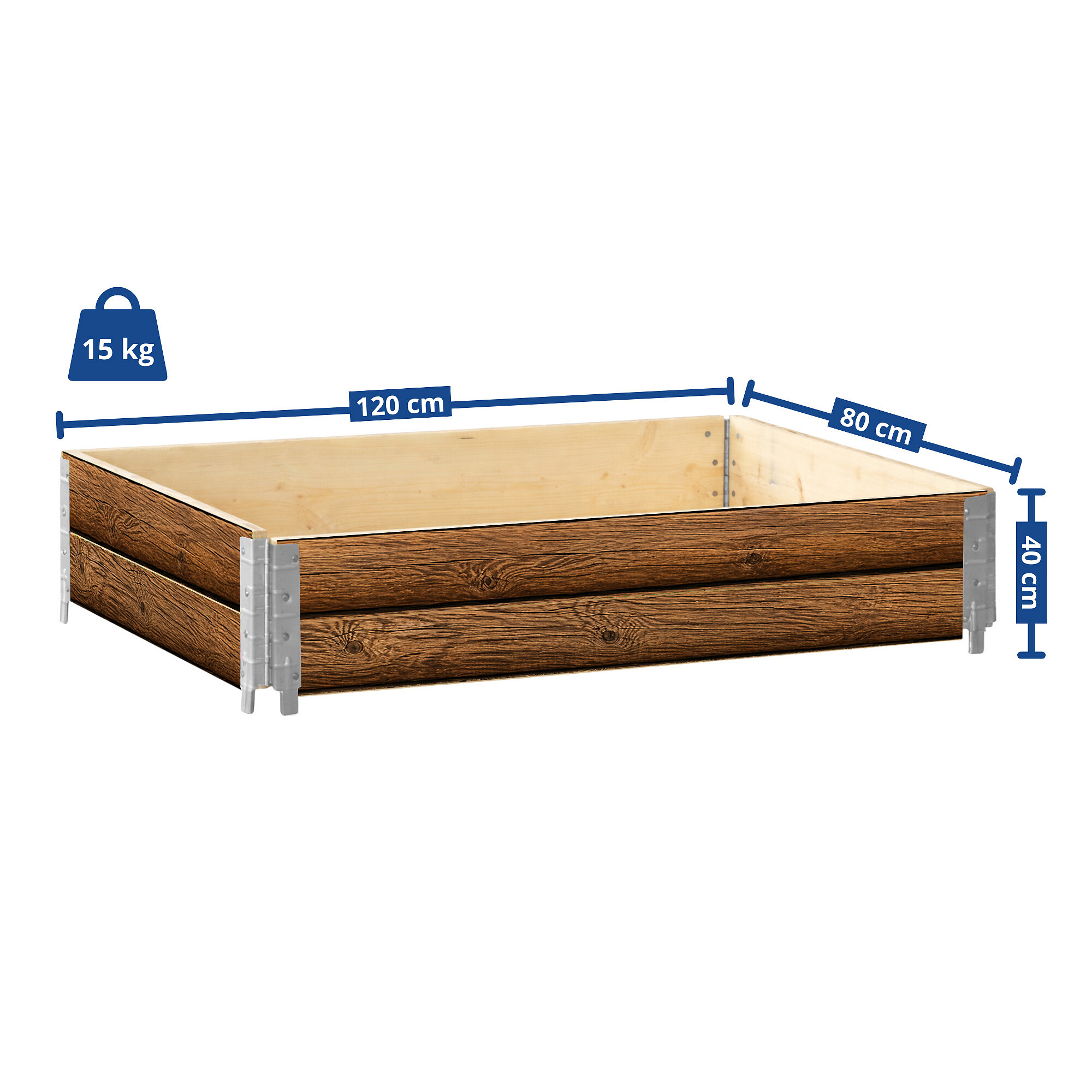 Záhon je vyroben z borovicového dřeva s certifikací IPPC. Vnější strana je doplněna grafikou dřeva, která zvýrazňuje jeho zahradní vzhled a dobře se hodí do venkovního prostředí. Rozměr 120 × 80 cm nabízí dostatek prostoru pro domácí pěstování běžných druhů zeleniny, bylinek, jahod i květin. Výška 40 cm umožňuje vytvořit vrstvu zeminy vhodnou pro různé typy výsadby.