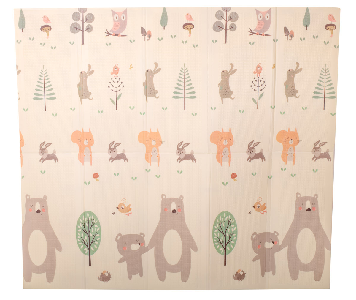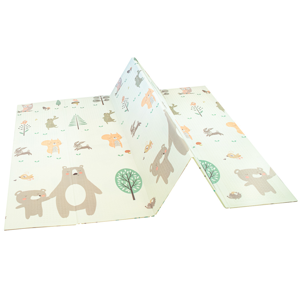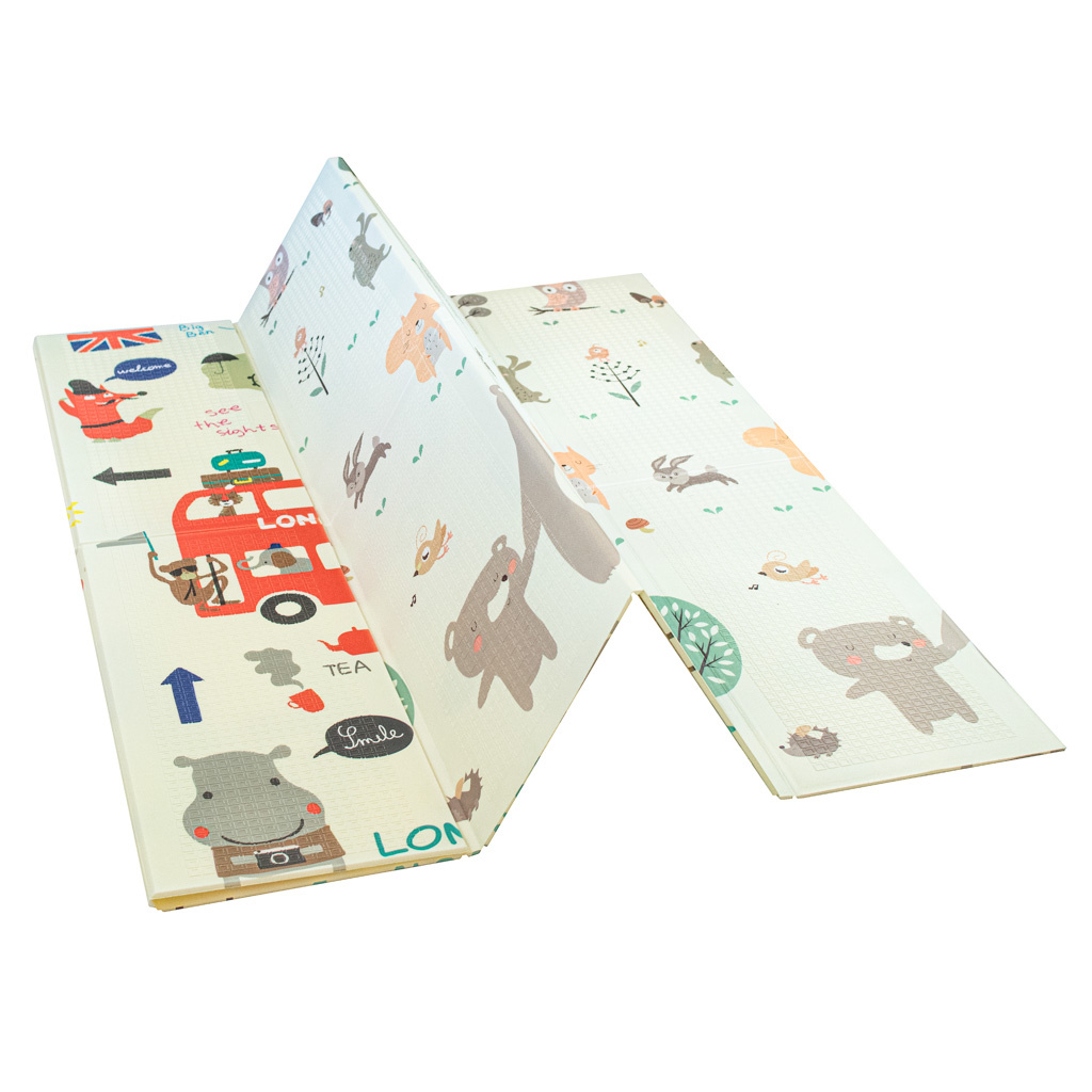 Měkká, velká, skládací, protiskluzová pěnová podložka. Lze jej použít jako hrací koberec. Na každé straně je jiný potisk. K dispozici v krémové barvě s potiskem sovy a dalších zvířat. Vyrobeno z voděodolné pěny. Rozměry: 200 x 180 cmCelý popis