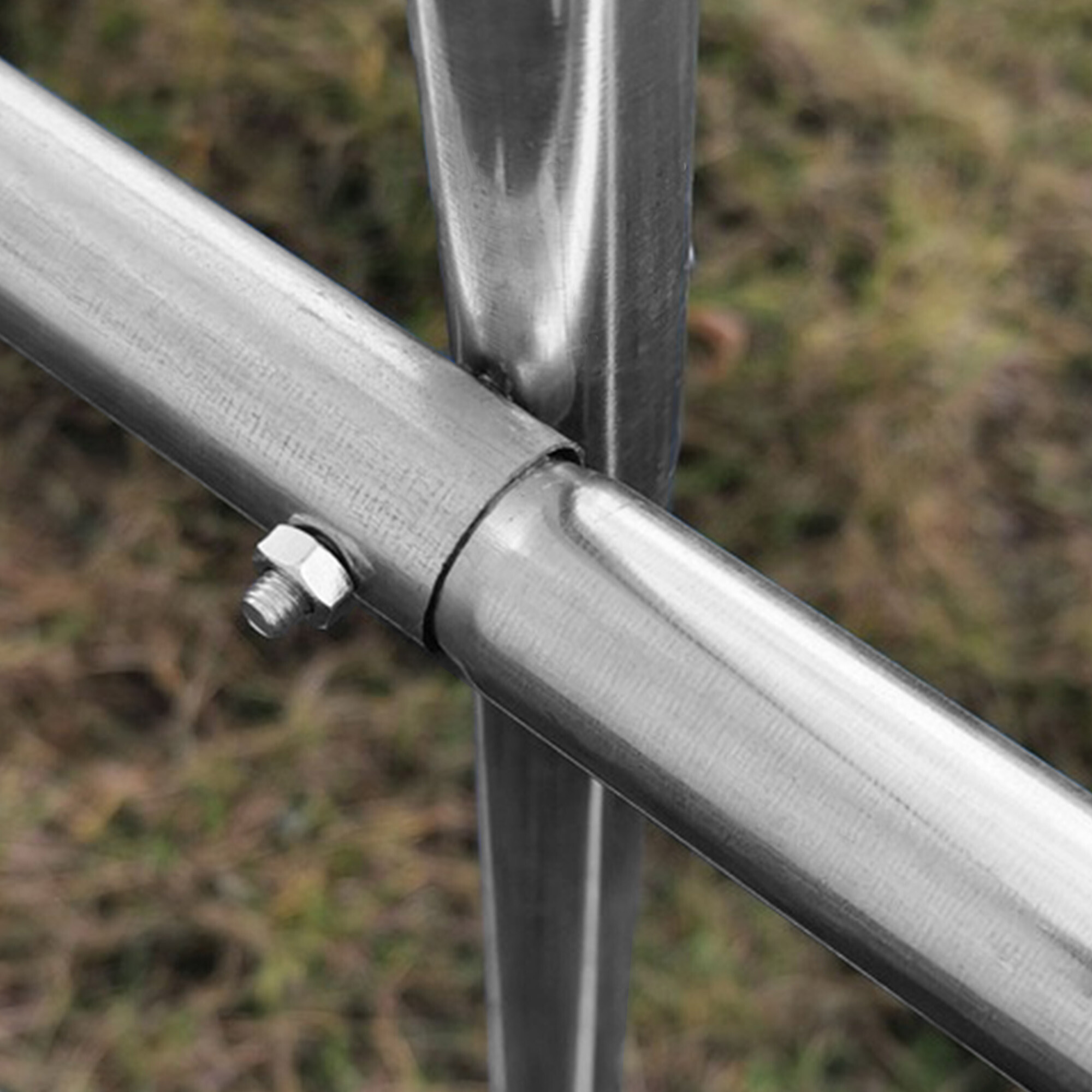 Snadná montáž a možnost sestavení téměř kdekoli na zahradě. Konstrukci tvoří ocelové trubky práškově lakované pro maximální pevnost a dokonalou ochranu proti korozi. Spoje jsou šroubovány což spolehlivě zaručuje tuhost konstrukce.