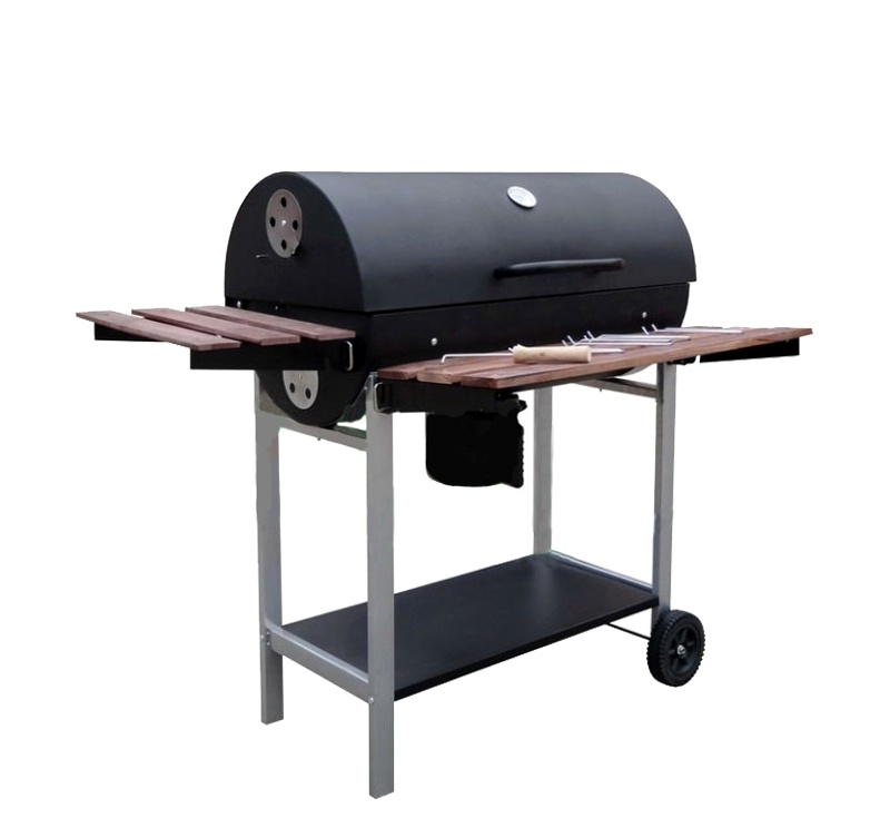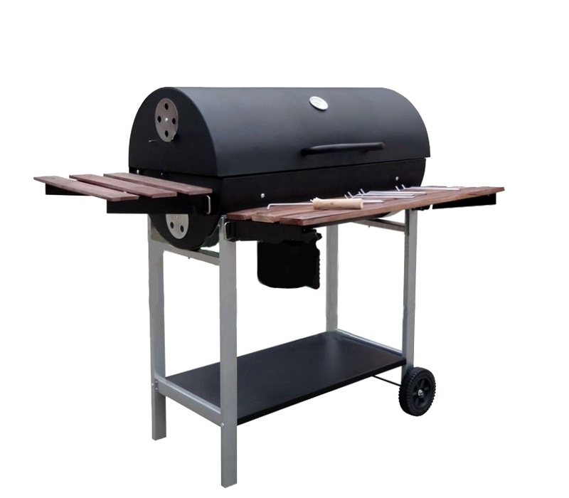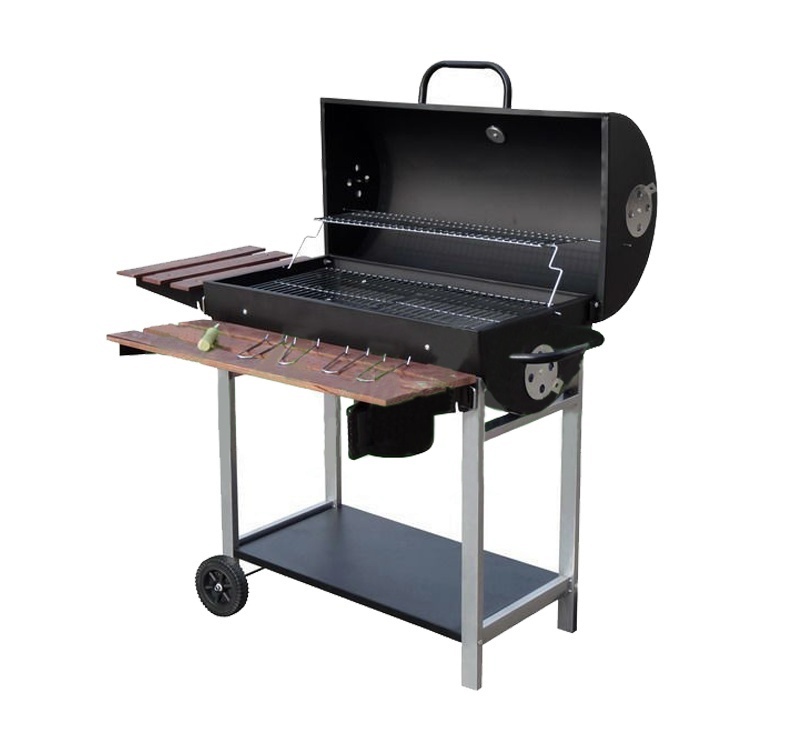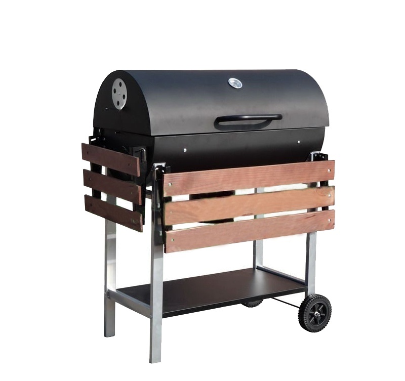 Prostorný rošt spolu s dvěma dřevěnými odkládacími poličkami umožní skutečný komfort při grilování. Gril je vybaven pojezdovými kolečky pro lepší manipulaci.