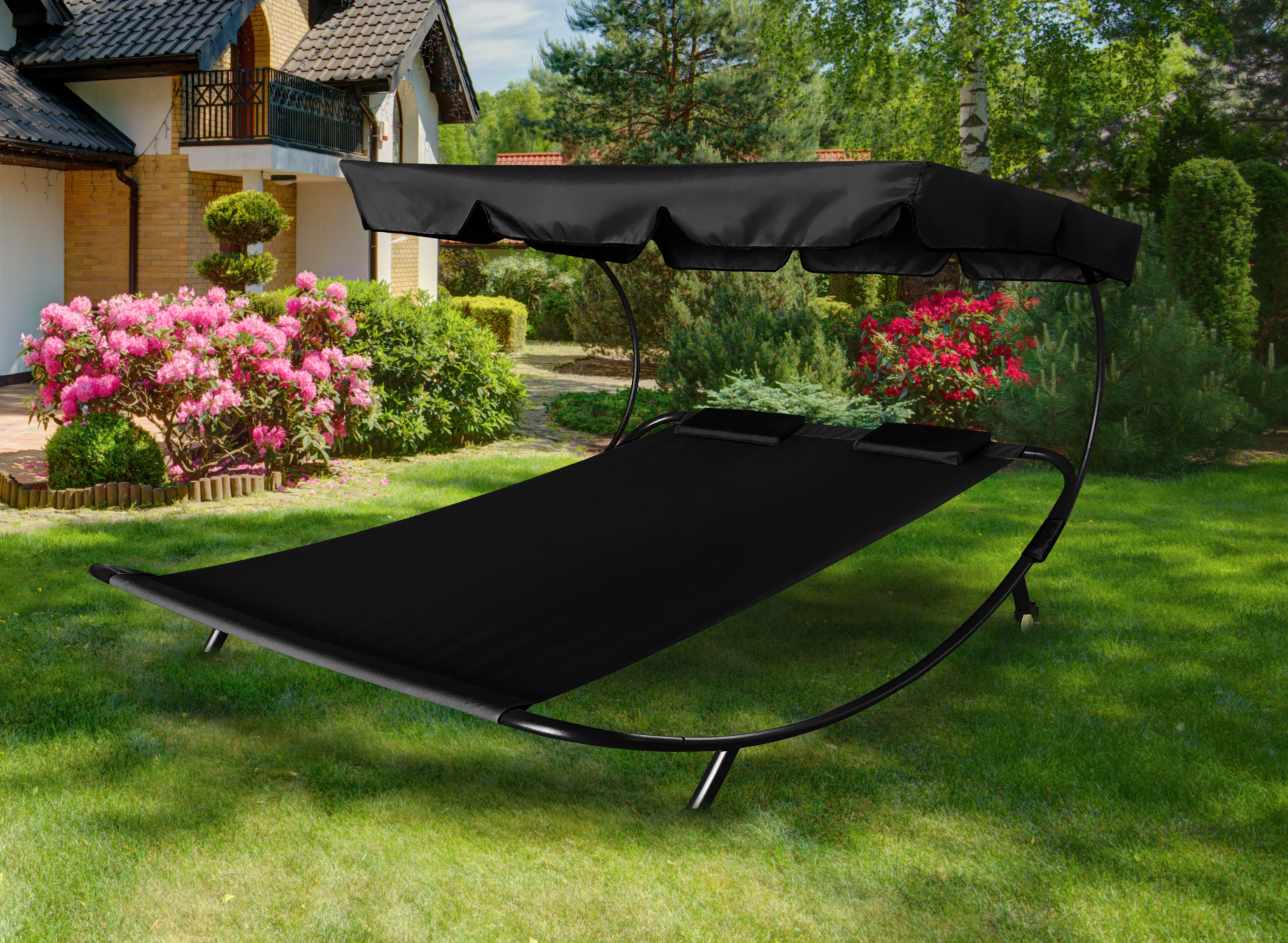 Aga Zahradní lehátko pro dvě osoby se stříškou Černé
