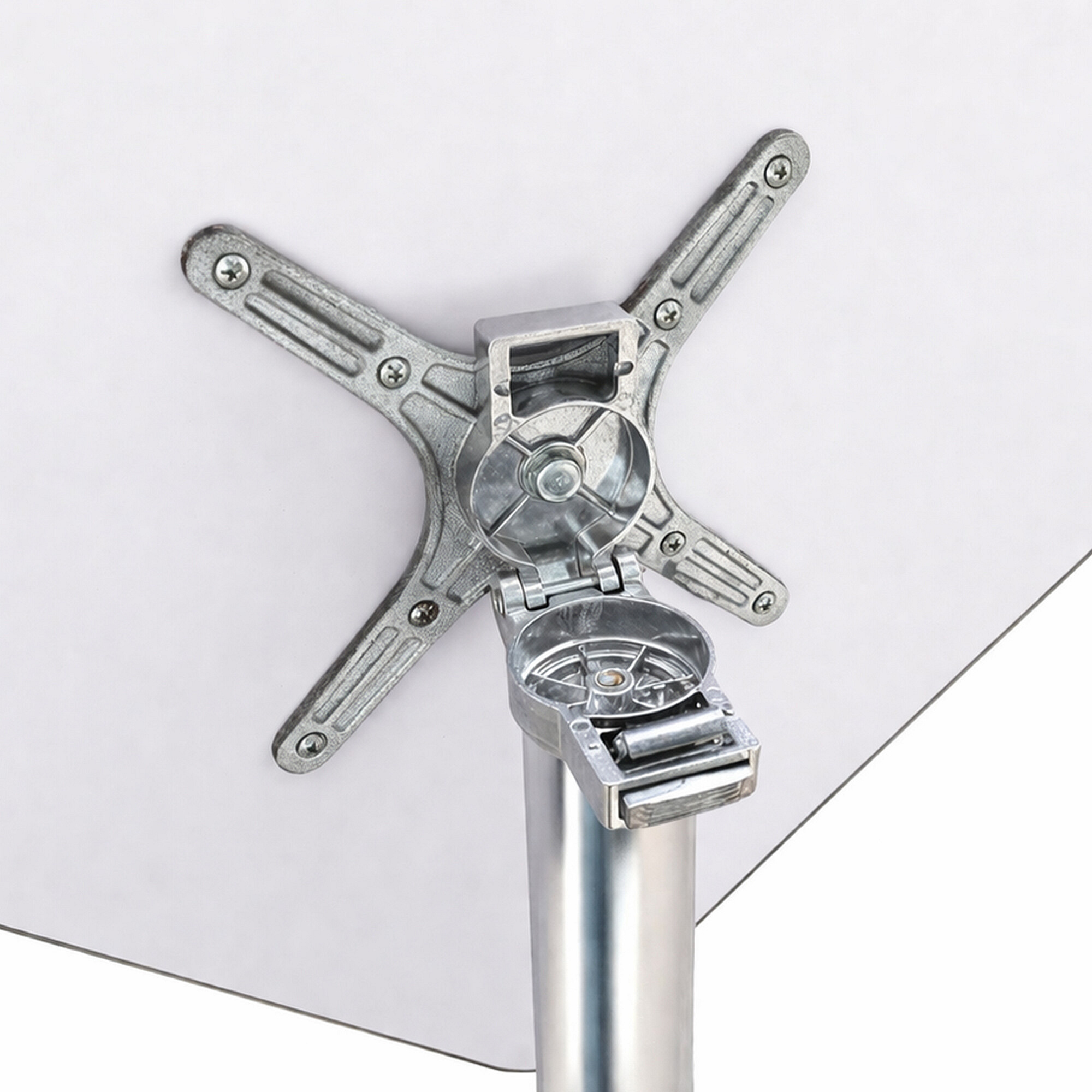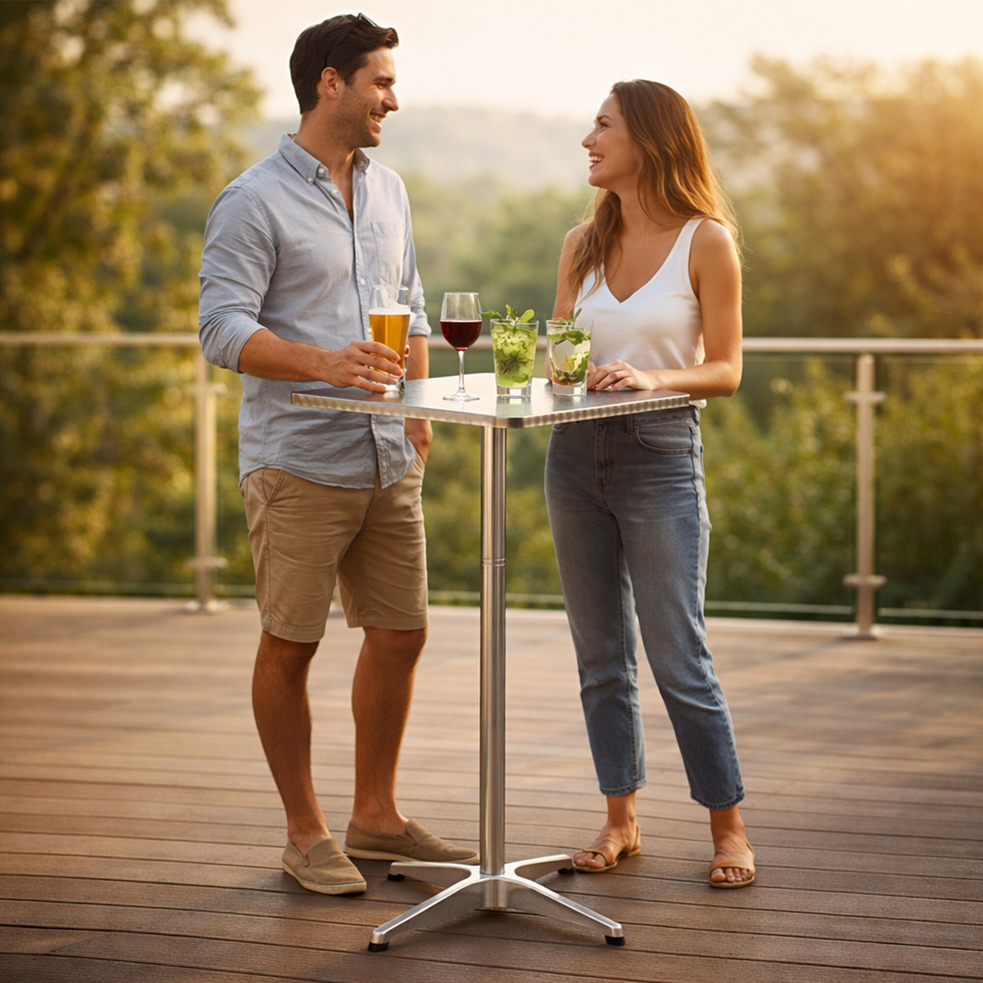 Zahradní stůl BISTRO s pevným hliníkovým rámem a nerezovou deskou v moderním designu, vhodný pro zahrady, terasy, kavárny, altánky, balkóny či pláže.