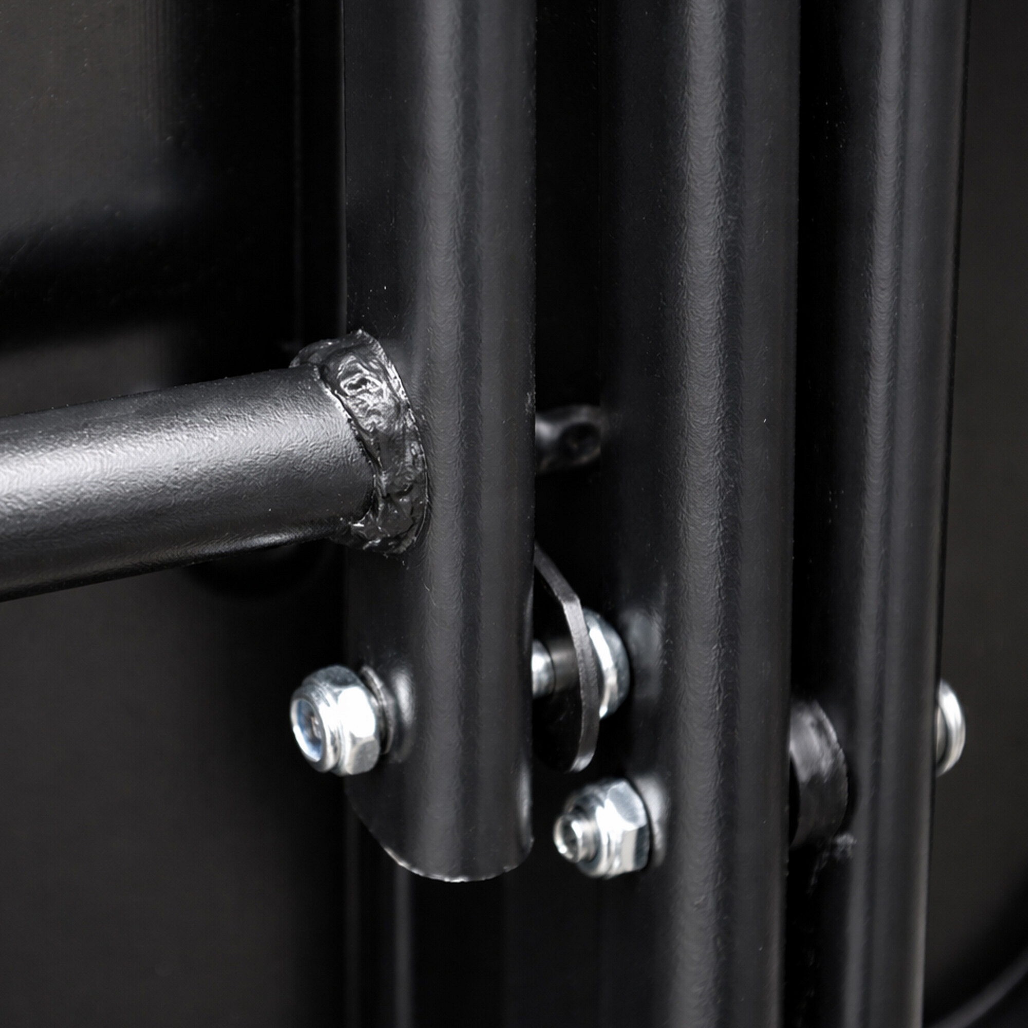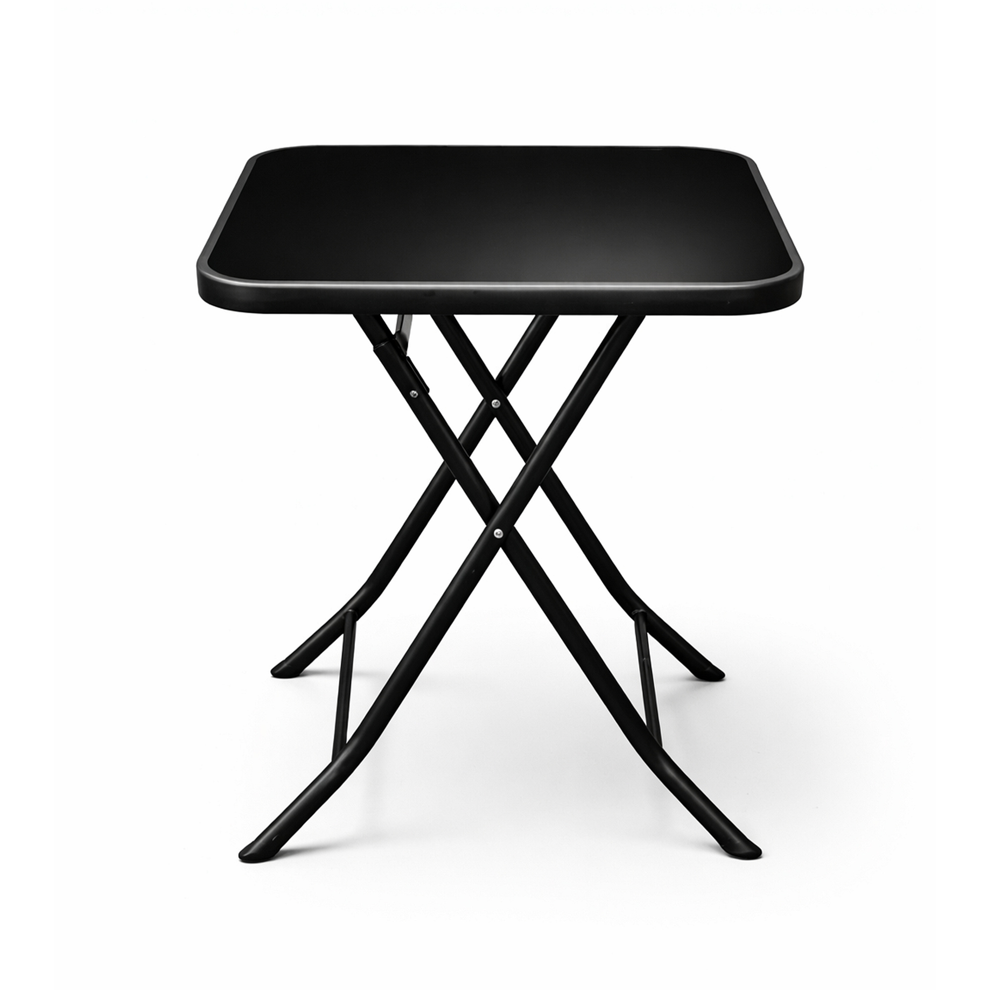Zahradní stůl s pevným kovovým rámem a skleněnou deskou, vhodný pro zahrady, terasy, kavárny, altánky, balkóny.