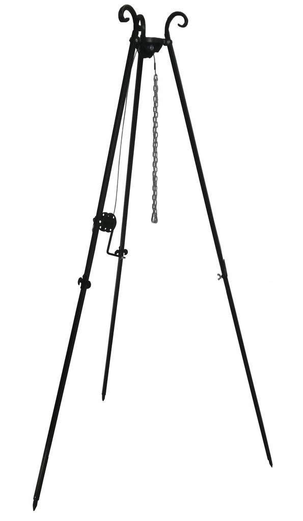 Pokud máte rádi kempování a vaření v klasickém kotlíku, bude se vám hodit tato trojnožka, s jejíž pomocí zavěsíte rošt nebo kotlík nad ohniště. K zavěšení slouží háček na řetízku. Díky použitému materiálu má trojnožka velmi dlouhou životnost.