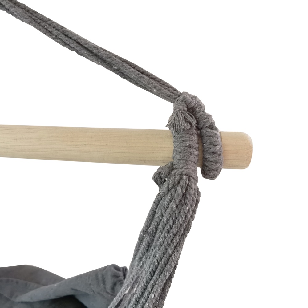 Houpací křeslo má dřevěnou příčku umožňuje pohodlné držení těla během odpočinku.