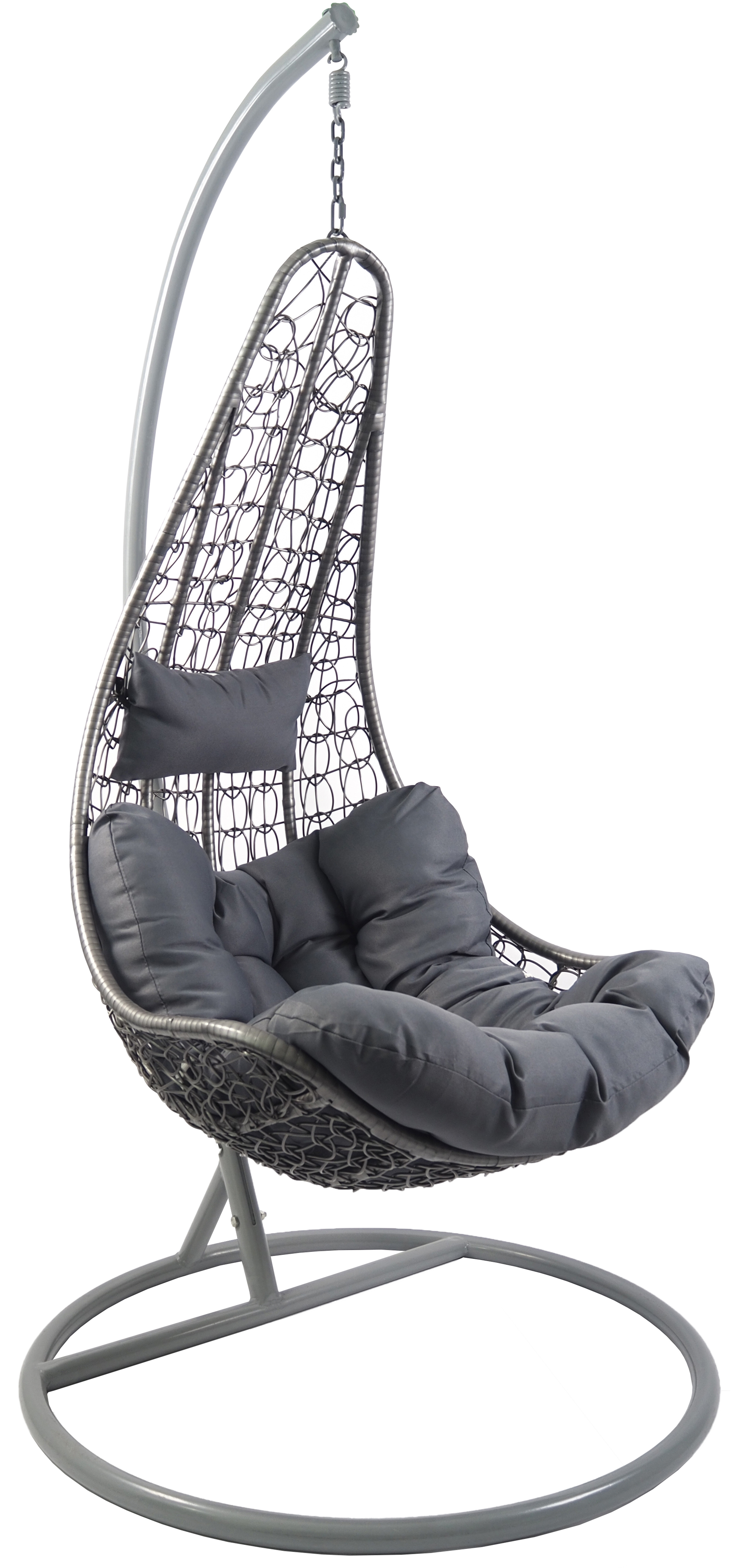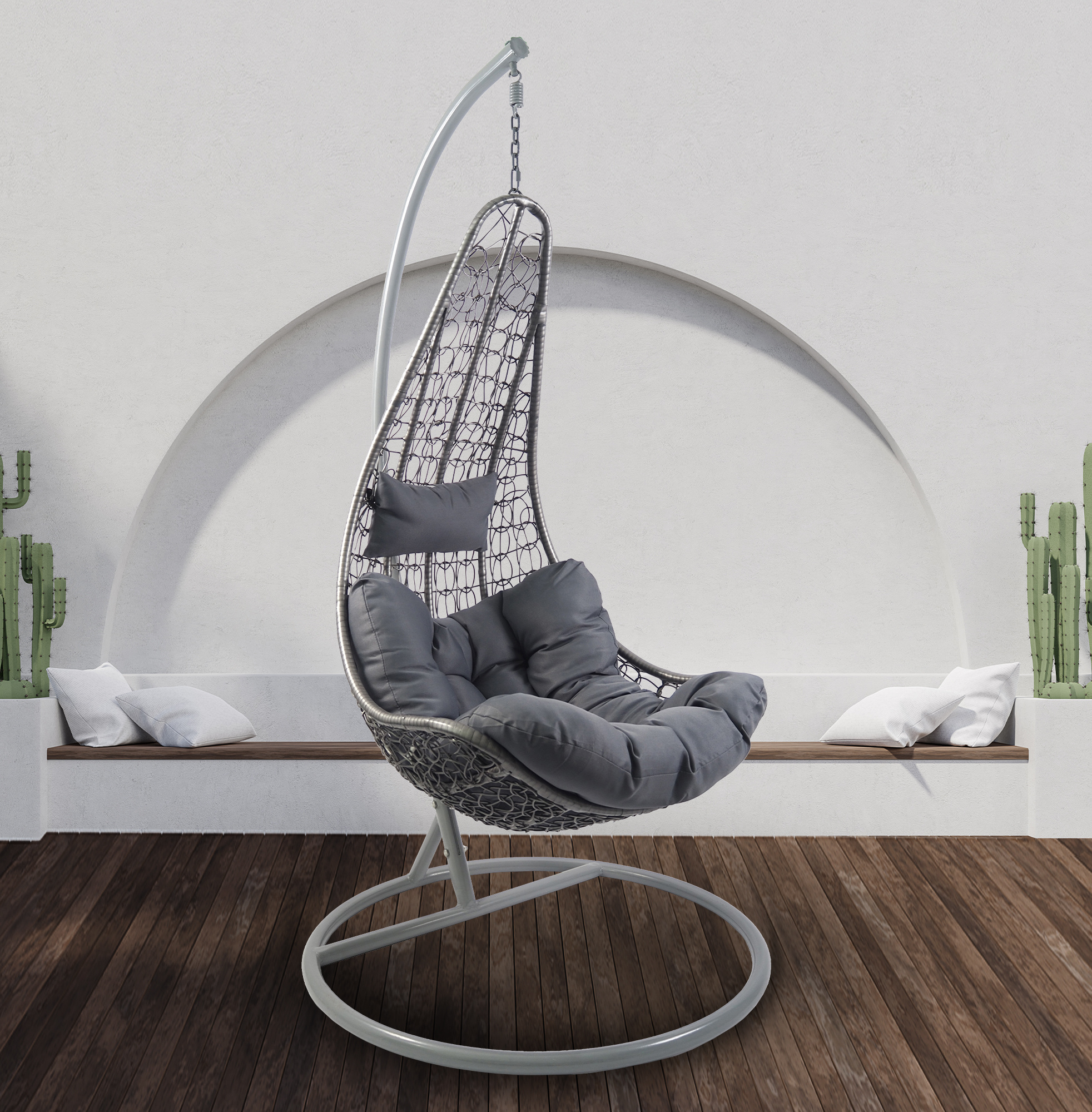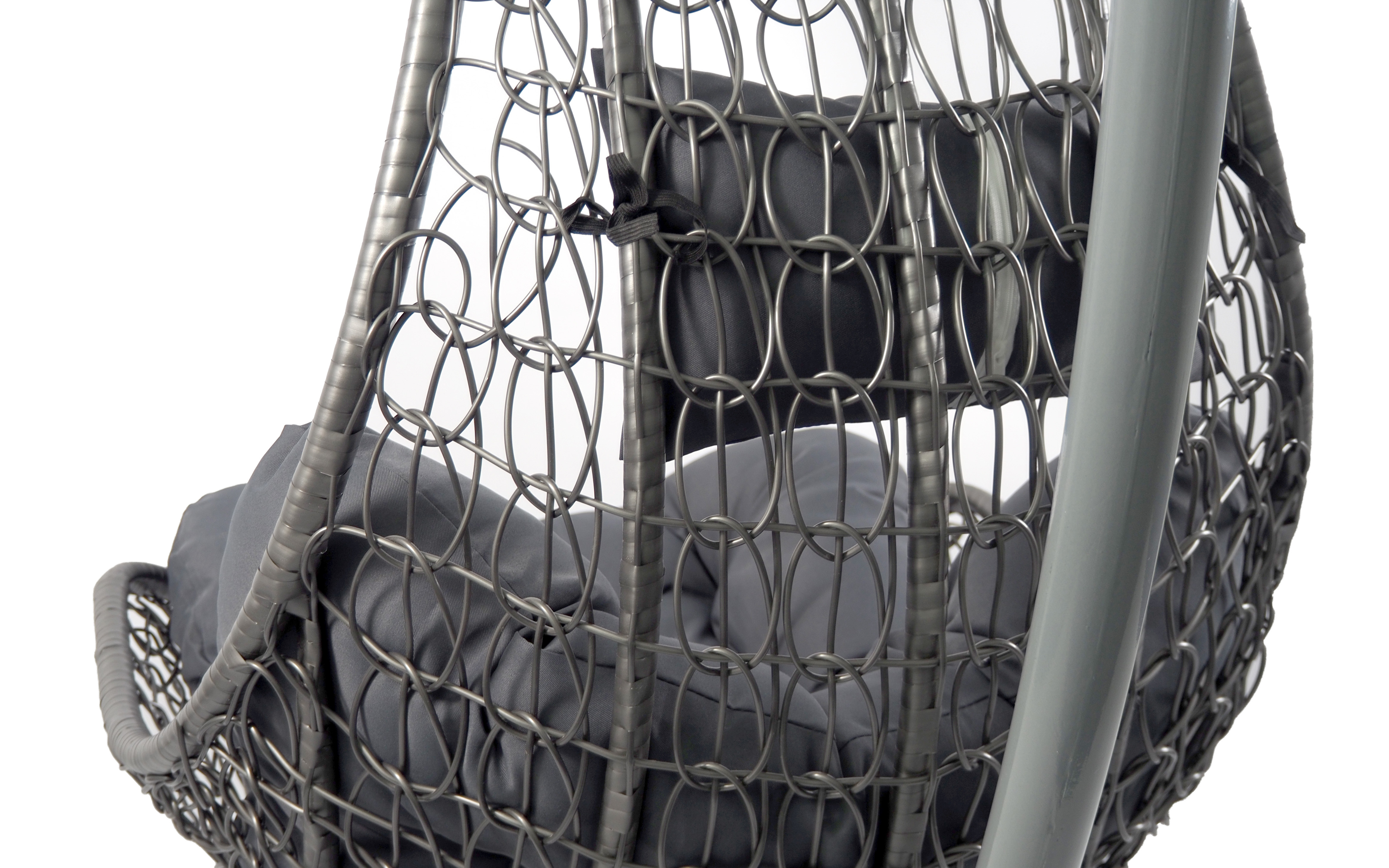Závěsné křeslo se stabilní kovovou konstrukcí sedacím prostorem ozdobně vypleteným z umělého ratanu. Součástí závěsného křesla jsou i pohodlné polštáře, které jsou voděodolné.