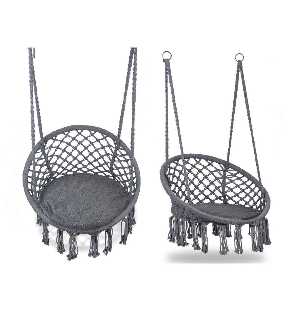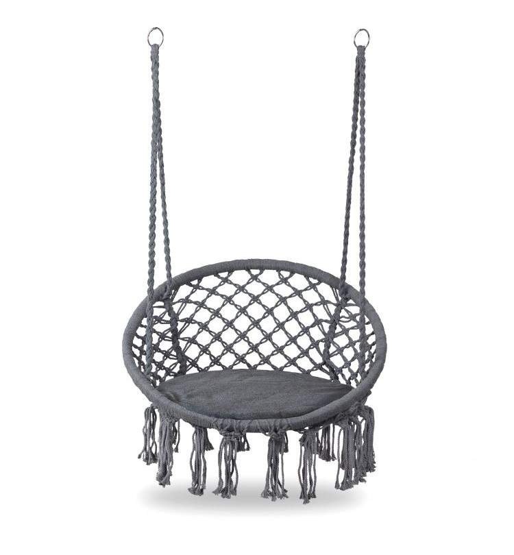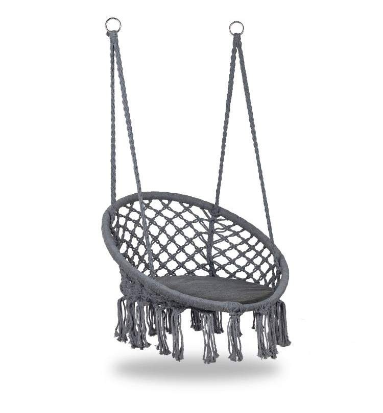 Závěsný koš v sobě spojuje komfort a nejnovějšími designovými trendy. Zajímavá konstrukce v kombinaci s uzlovými dekoracemi bez pochyby podtrhne design každého interiéru či exteriéru.