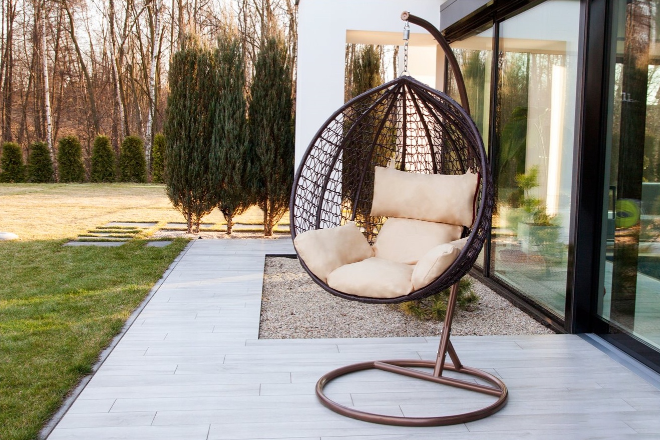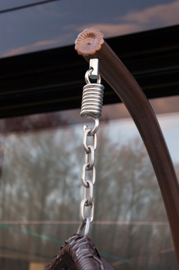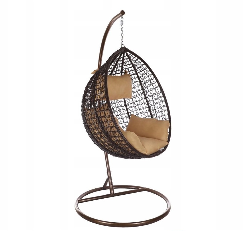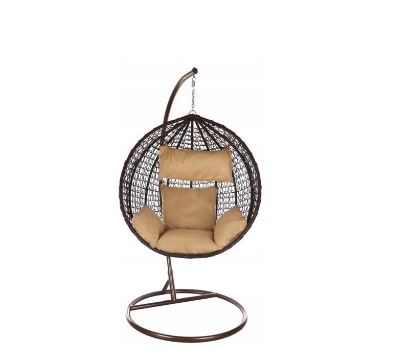 Závěsné křeslo s ocelovým rámem a sedacím prostorem z umělého ratanu, v moderním designu, vhodné pro zahrady, terasy, verandy, balkóny či pláže.