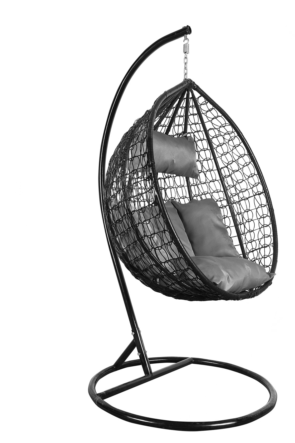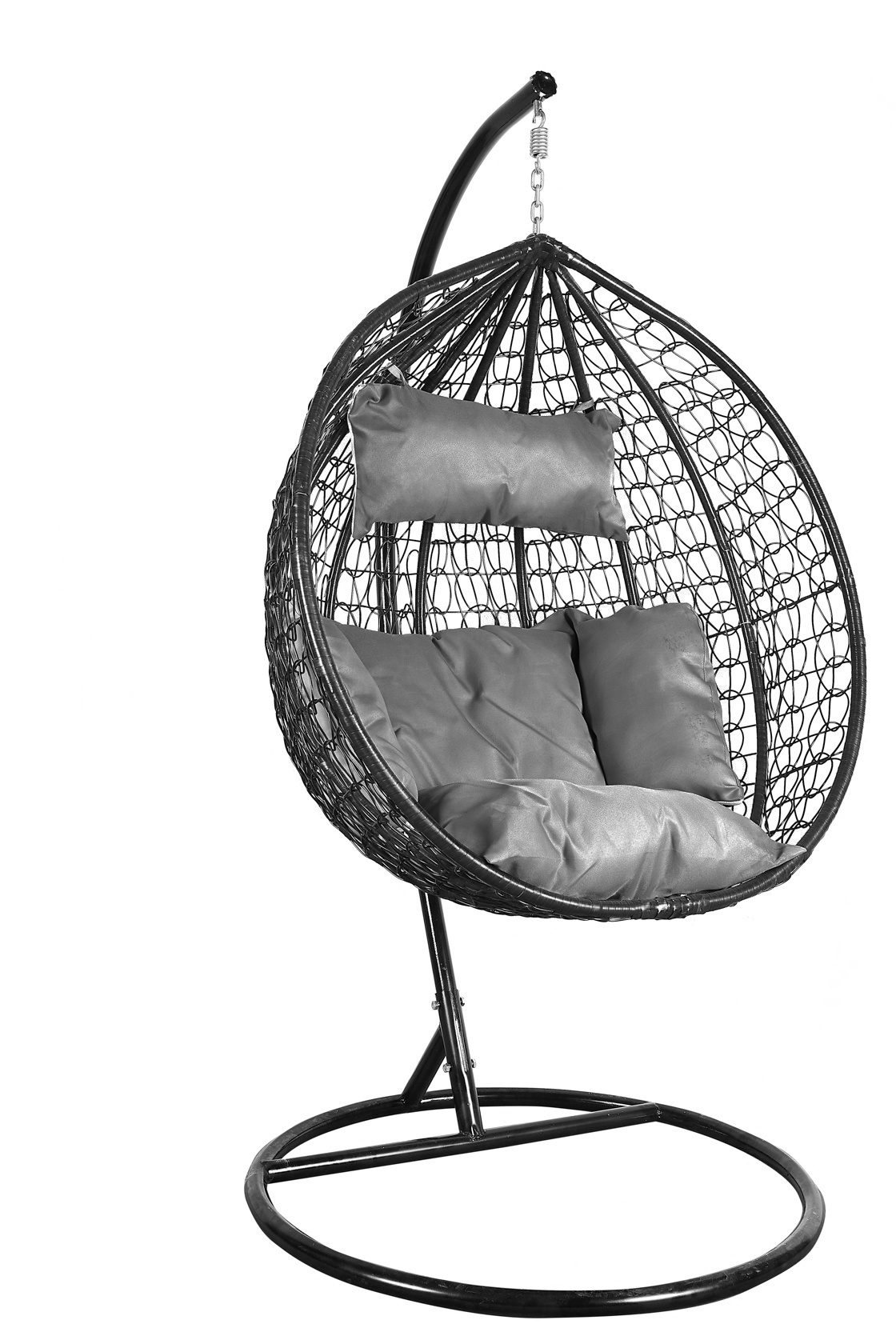 Závěsné křeslo se stabilní kovovou konstrukcí sedacím prostorem ozdobně vypleteným z umělého ratanu. Součástí závěsného křesla jsou i pohodlné polštáře.