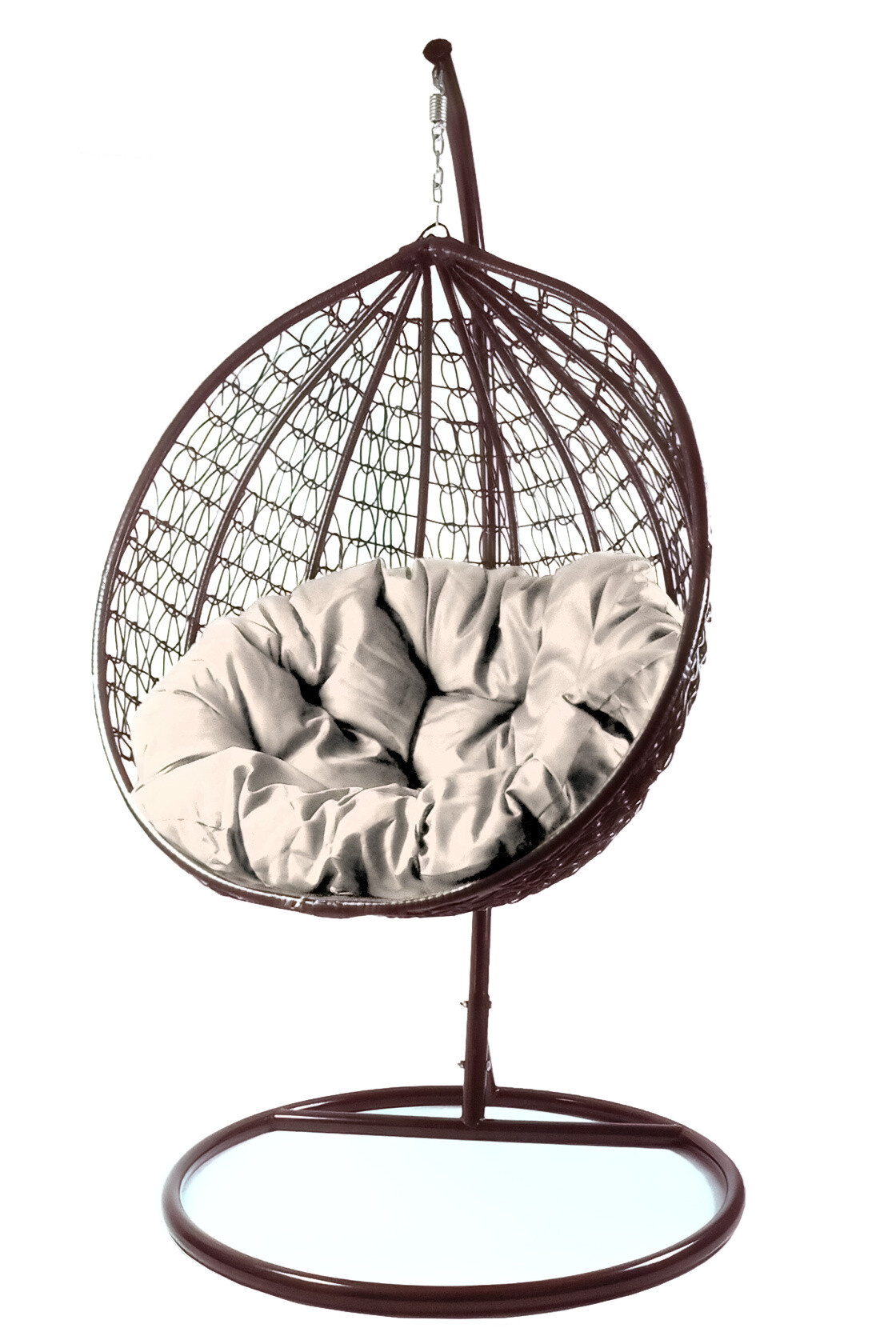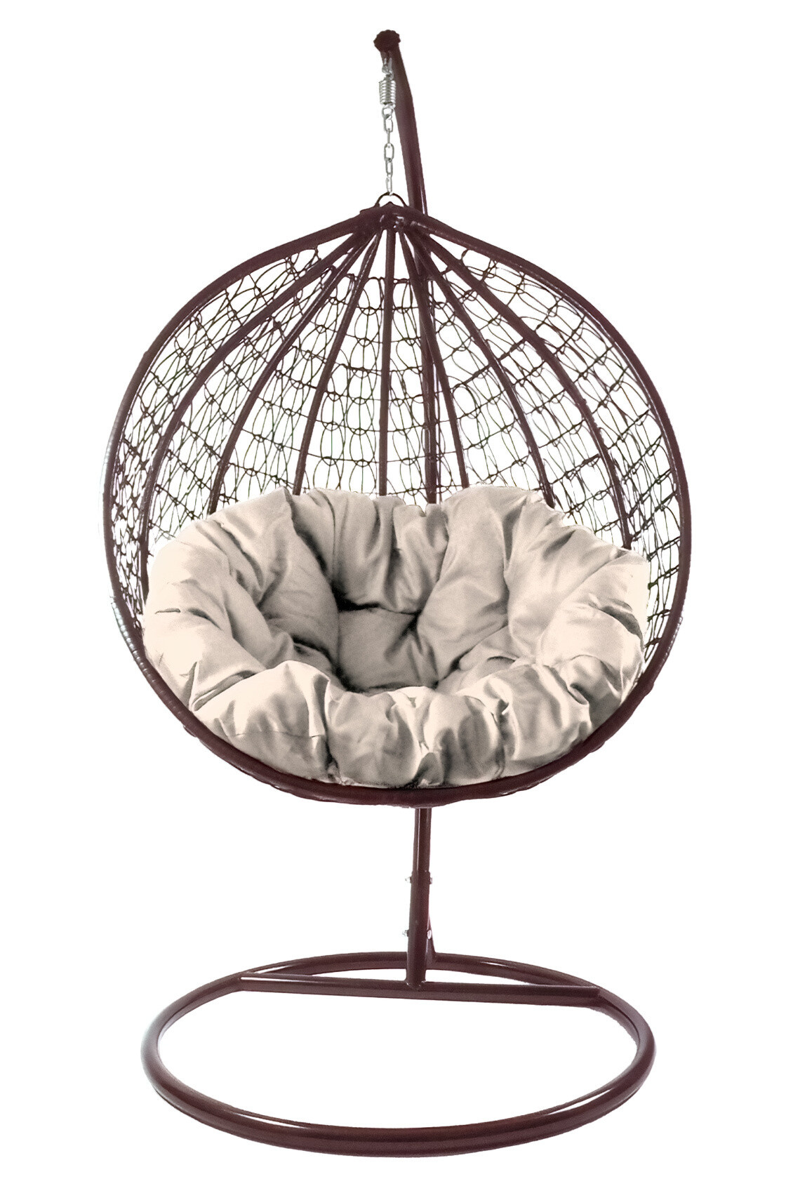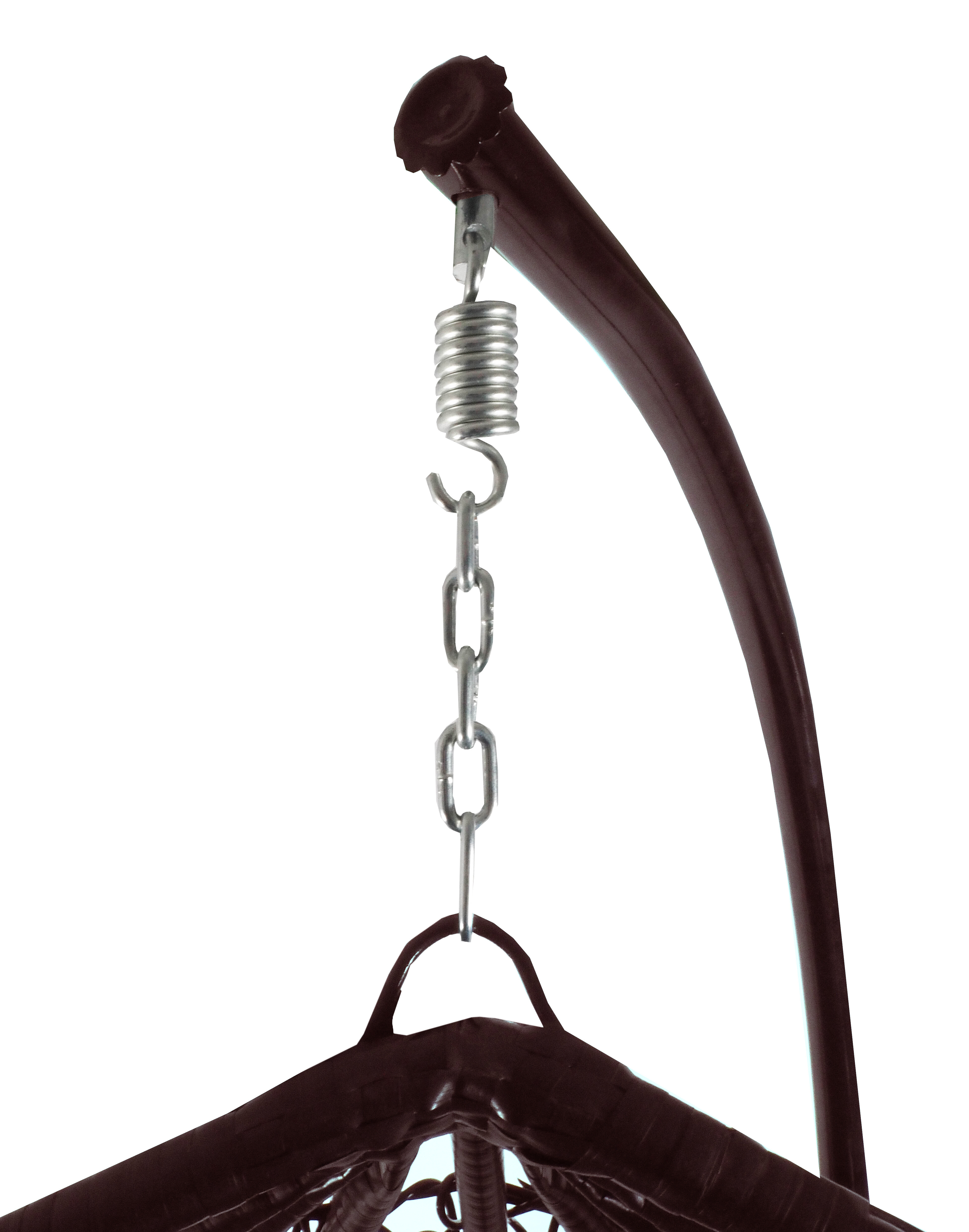 Závěsné křeslo se stabilní kovovou konstrukcí sedacím prostorem ozdobně vypleteným z umělého ratanu. Součástí závěsného křesla jsou i pohodlné polštáře.