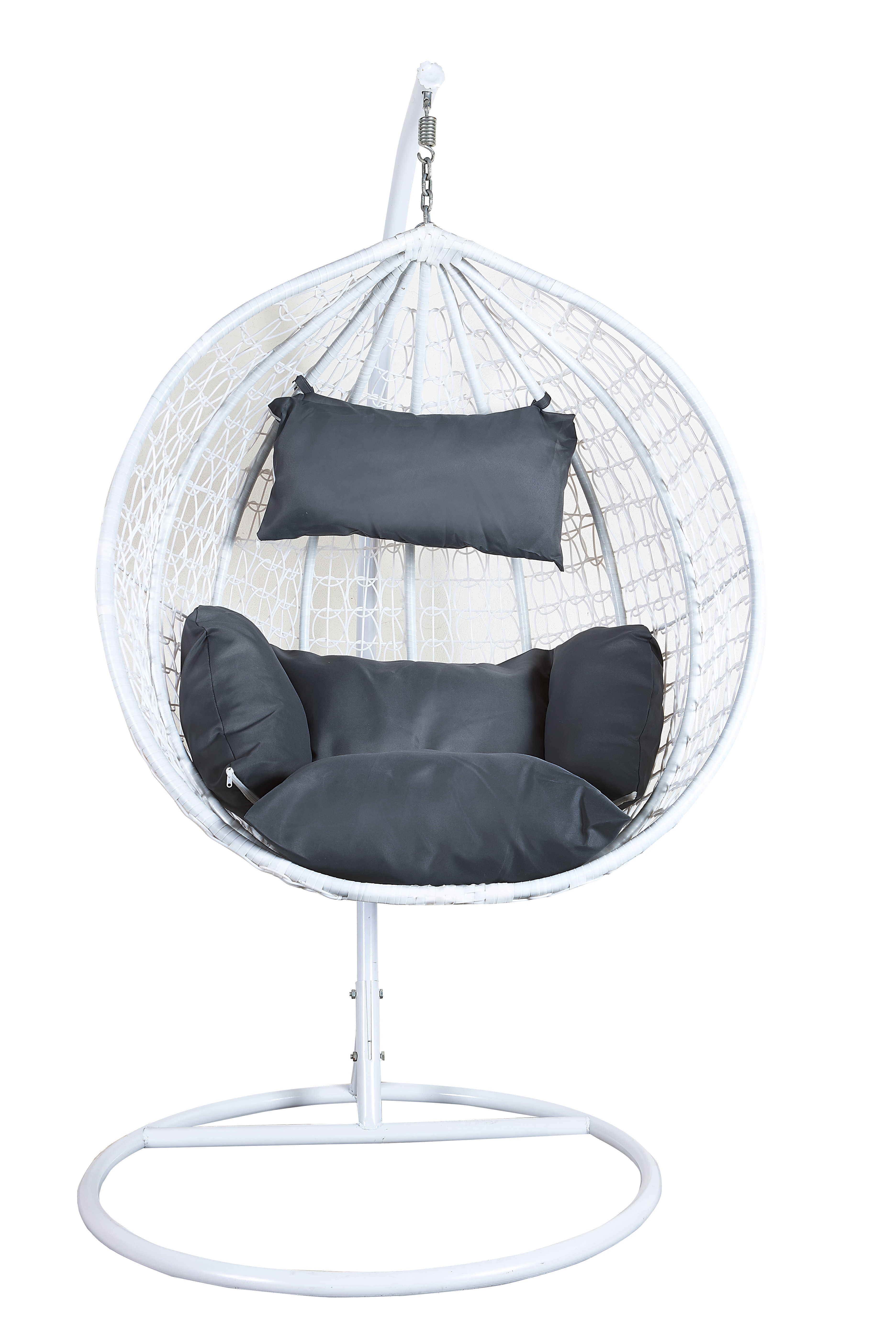 Závěsné křeslo se stabilní kovovou konstrukcí sedacím prostorem ozdobně vypleteným z umělého ratanu. Součástí závěsného křesla jsou i pohodlné polštáře, které jsou voděodolné.