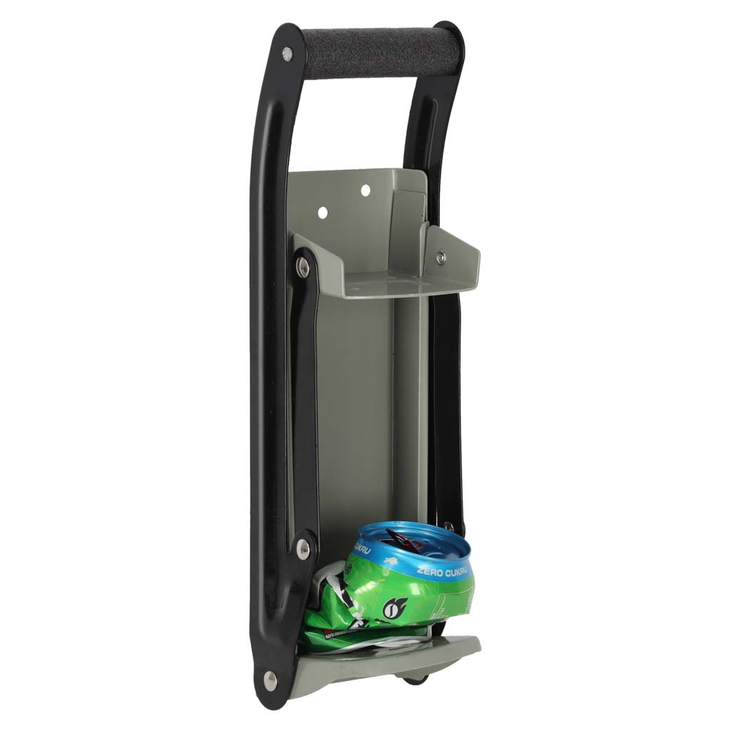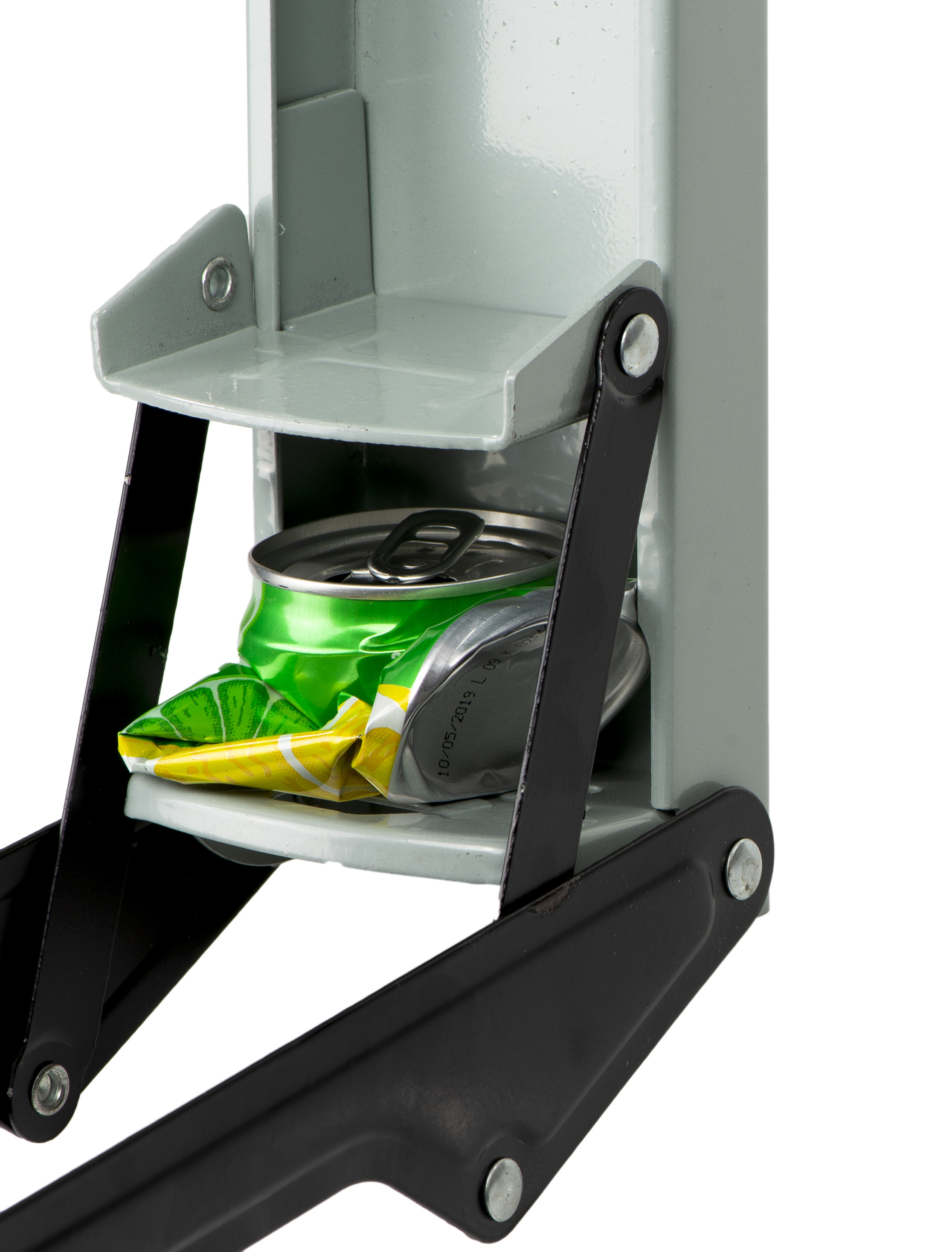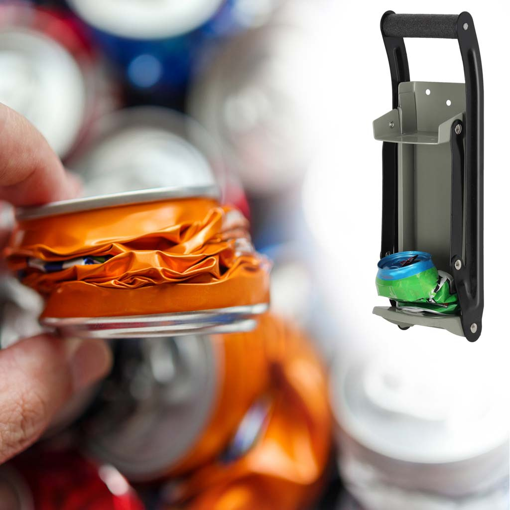 Jednoduše zatáhněte za rukojeť a plechovku rozdrťte.