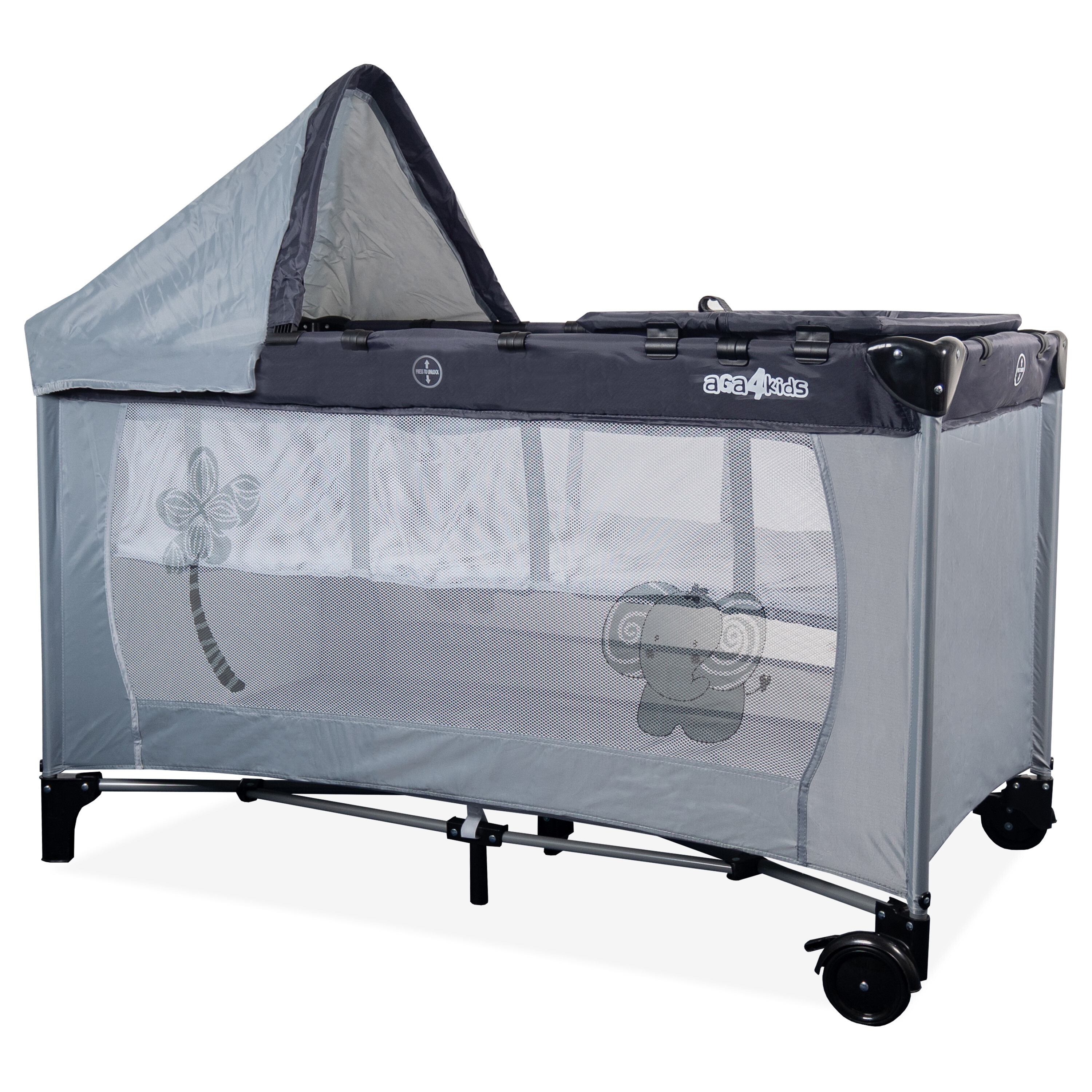 Cestovní postýlku Aga4Kids si zamilují všechny děti do 3 let. Postýlka má jednoduchý skládací mechanismus a po složení je velmi kompaktní a snadno přenosná.