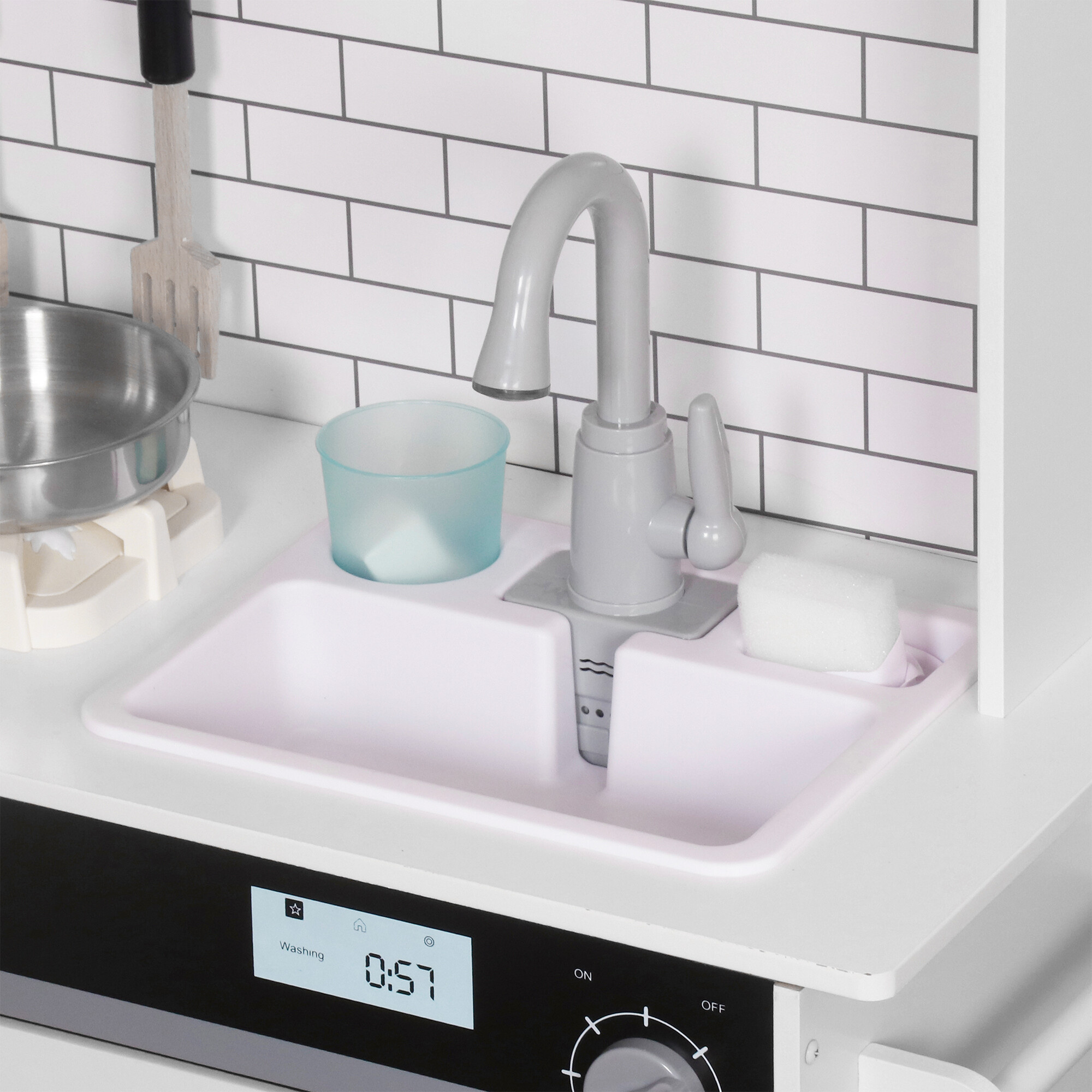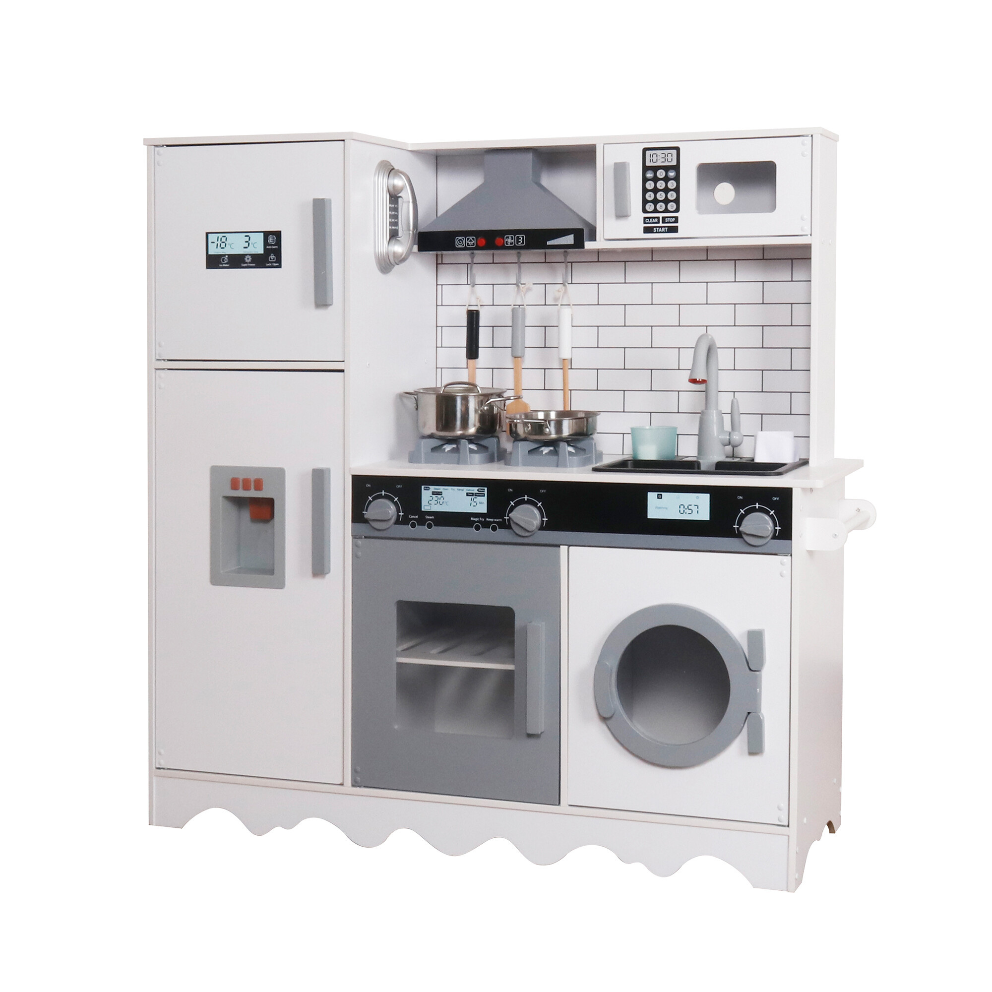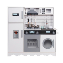 Moderní provedení kuchyňky doplňují i elektronické funkce, které hru ještě více oživí. Děti mohou využít výrobník ledu se světelnými a zvukovými efekty, elektrickou digestoř, mikrovlnnou troubu i sporáky, které při zapnutí svítí a vydávají realistické zvuky. Velkým lákadlem je také elektrický tekoucí dřez se světelným efektem, díky kterému mohou děti napodobovat skutečné mytí nádobí. Celou výbavu završuje pračka, která svítí a vydává zvuky praní, takže děti mohou vyzkoušet i další domácí činnosti.