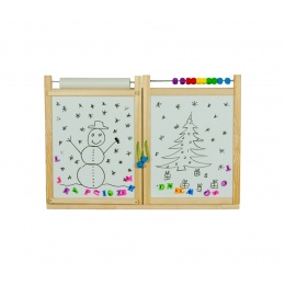 - Černá tabule pro kreslení křídami, bílá magnetická pro kreslení fixy