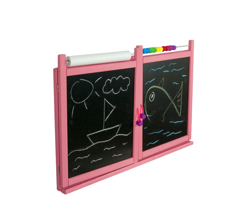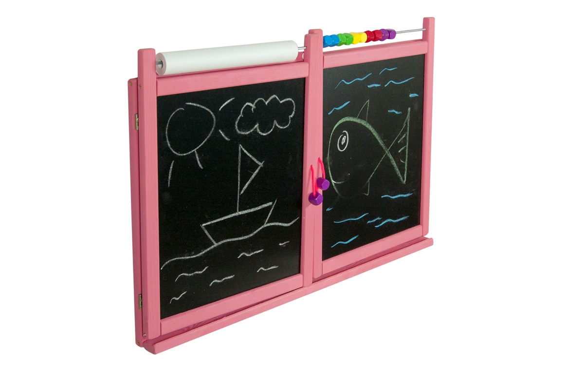 Na černou tabuli mohou děti malovat klasickými křídami a na druhou, bílou, pak barevnými fixy nebo na papír pastelkami.