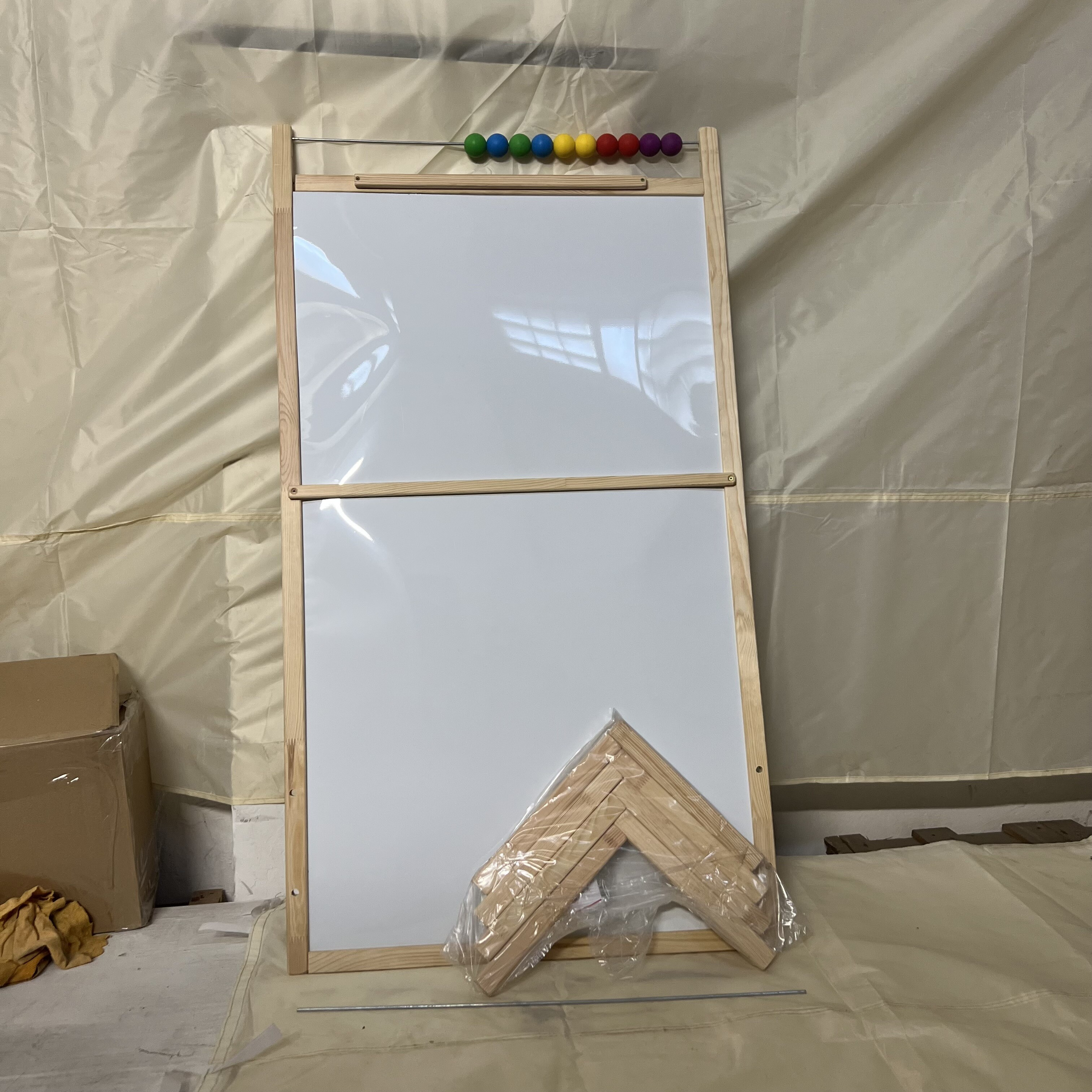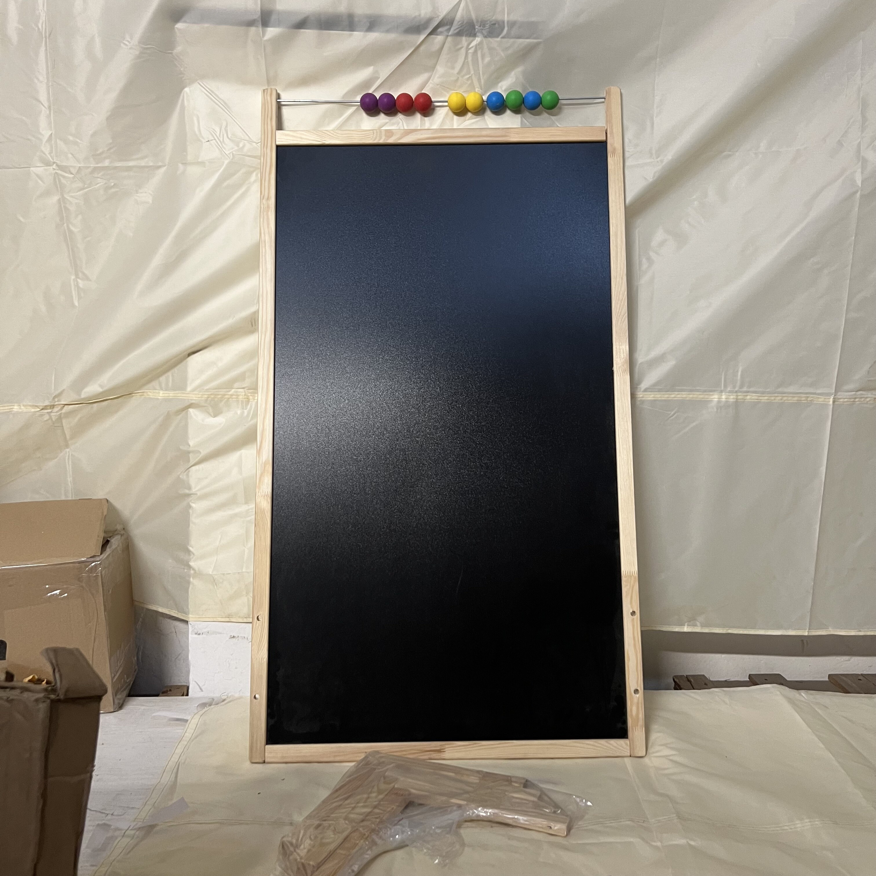 - Jedna strana tabule určená pro křídu a druhá, magnetická pro malování s fixy