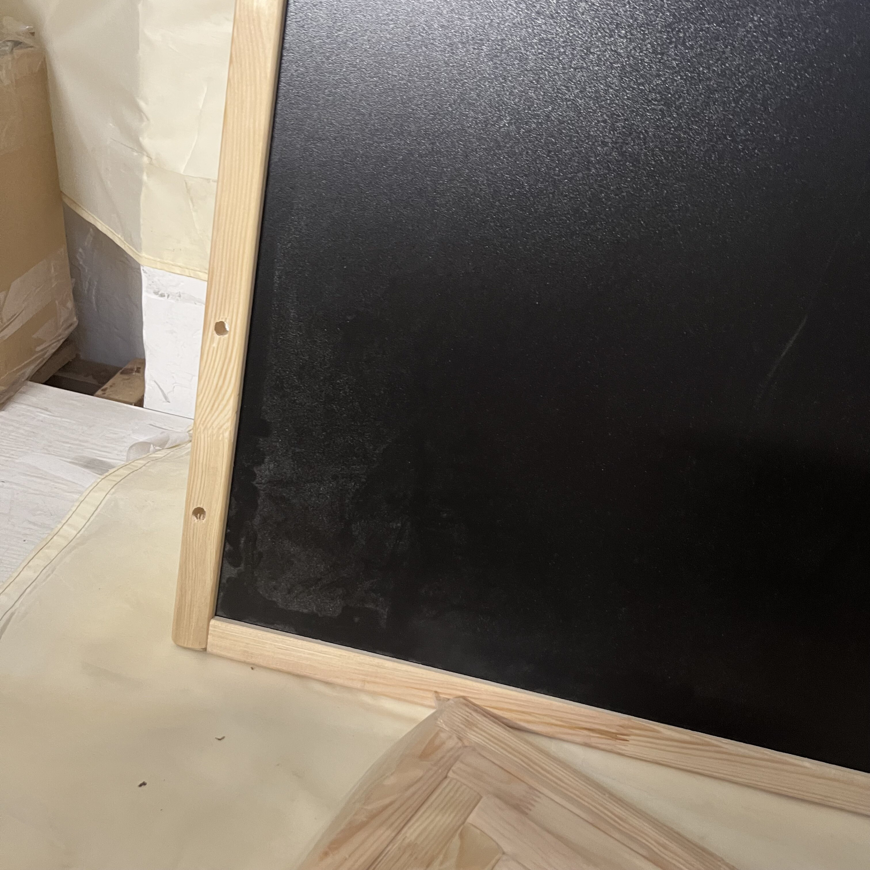Tabule je mírně poškozená. Bílá část tabule je v místě prohnutá a v jednom rohu nelze spojit (krátká laťka).