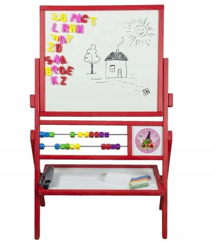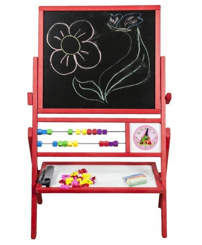 Otočná magnetická tabuľa pre deti s úložnou poličkou, počítadlom a hodinami, od spoločnosti Aga4Kids.