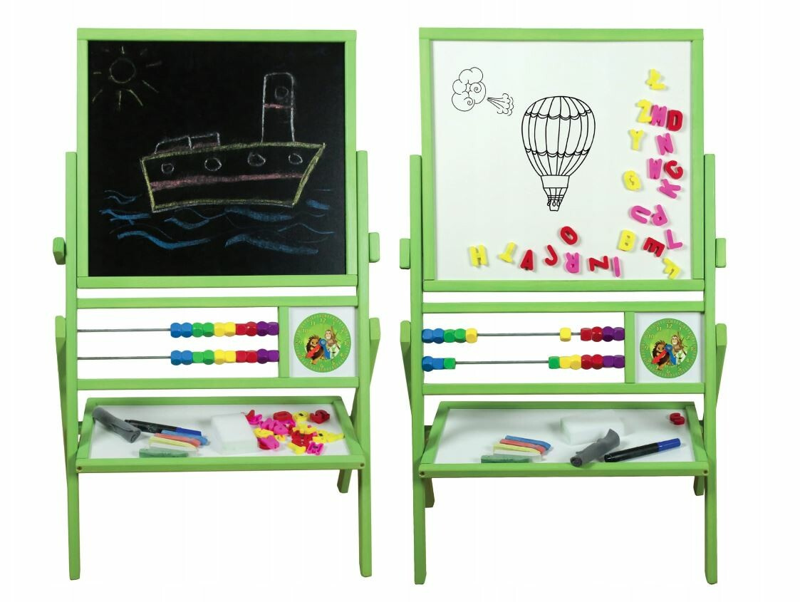 Otočná dětská magnetická tabule s odkládací poličkou, počítadlem a hodinami, od firmy Aga4Kids.