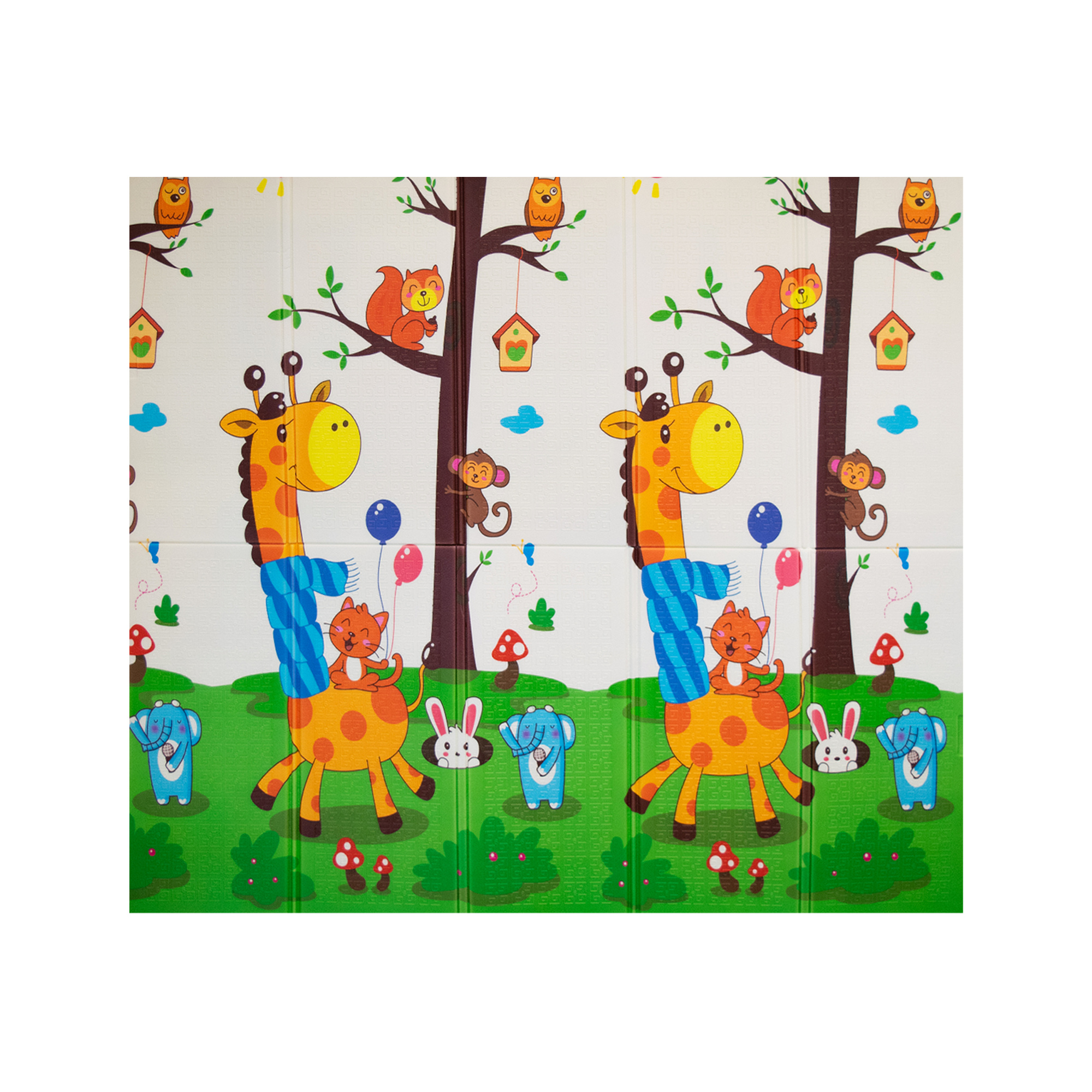Protiskluzový povrch pomáhá udržet podložku stabilně na místě i při aktivnější hře, zatímco oboustranný potisk s dětskými motivy podporuje zrakové vnímání, orientaci a přirozenou zvídavost dítěte.