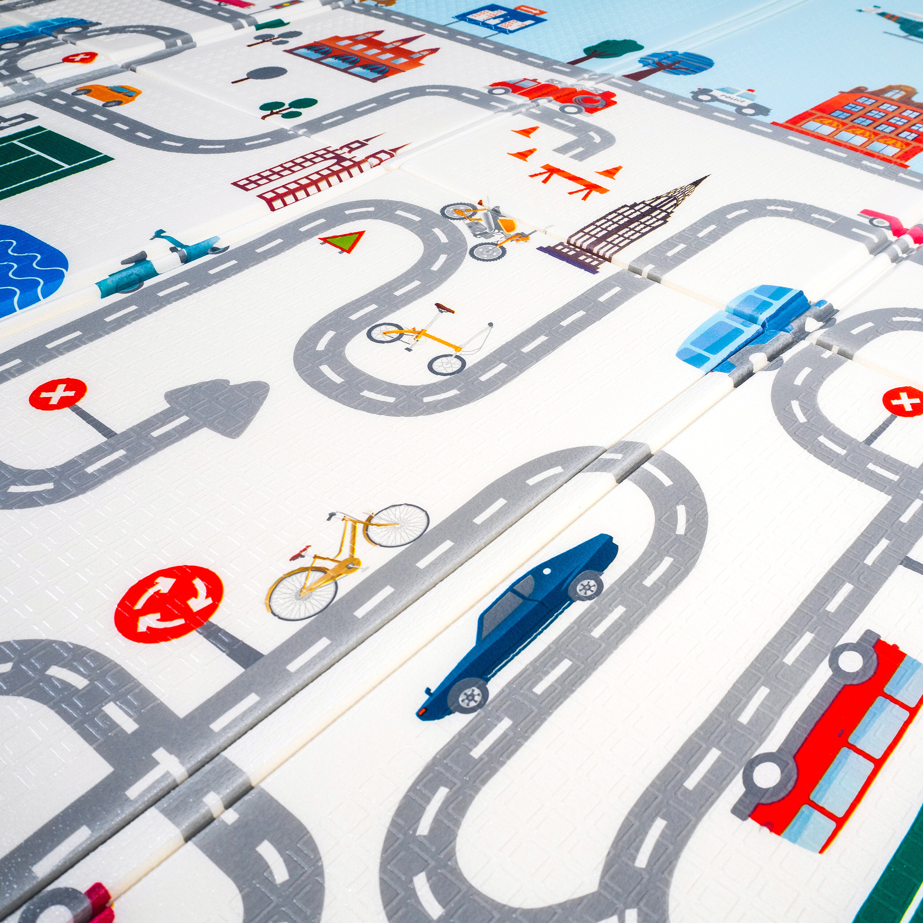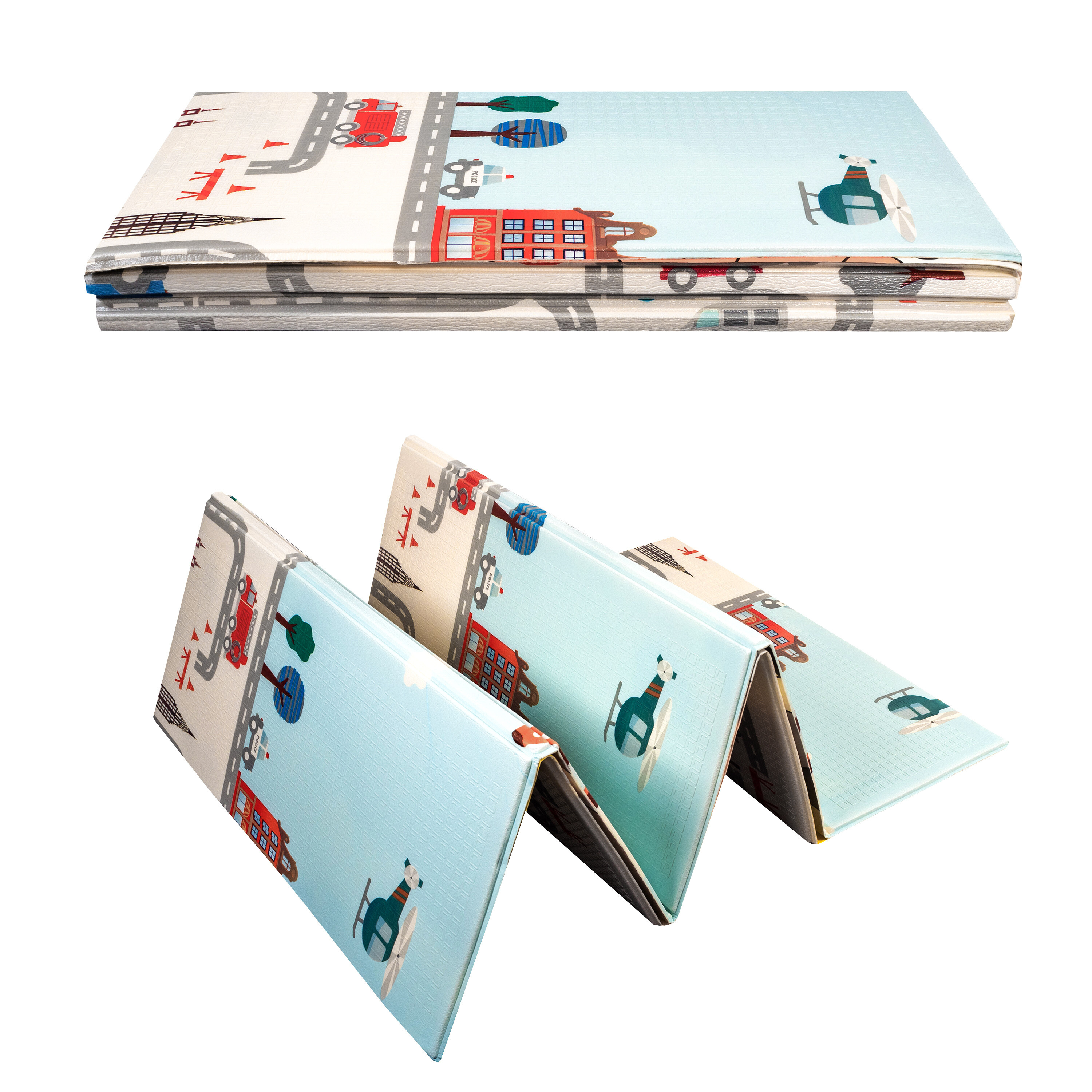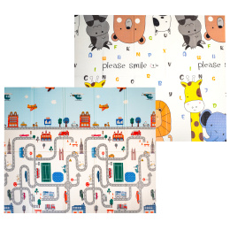 Hrací podložka má oboustranný potisk s veselými motivy a protiskluzový povrch zajistí bezpečnost každé hry.