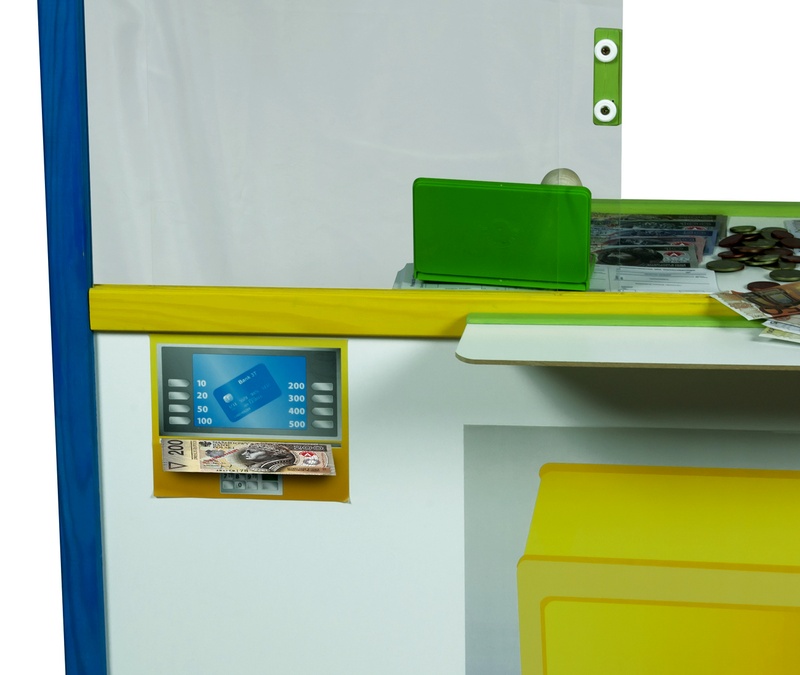 Dále můžou děti používat bankomat a tři platební karty. Také lze vše patřičně razítkovat a posílat obsílky.