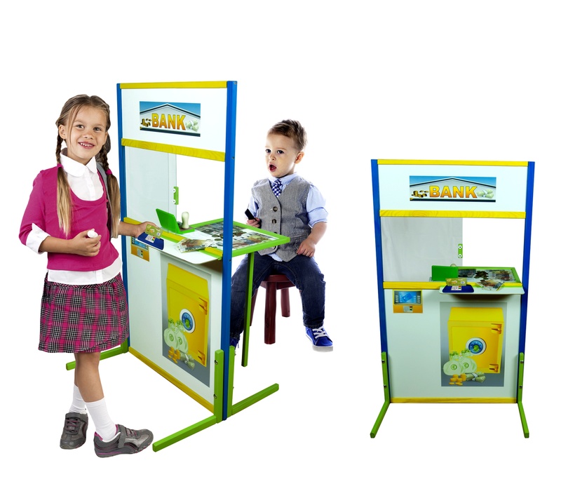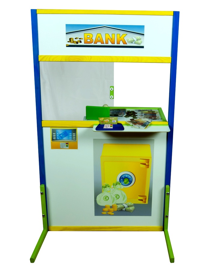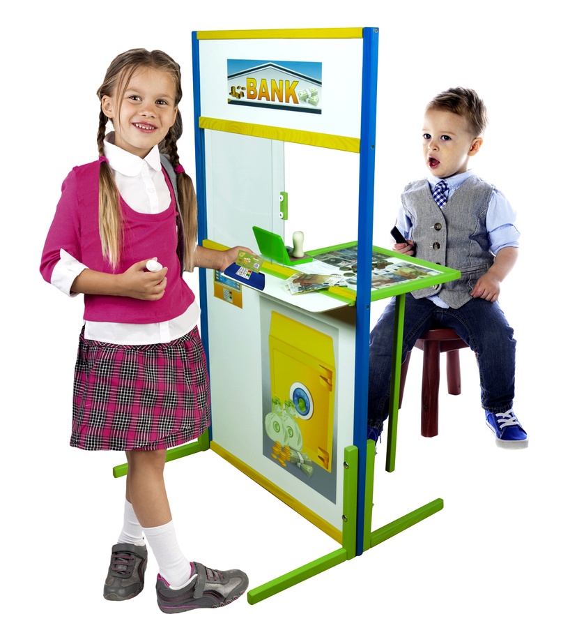 Dětská křídová tabule v podobě banky, s bohatým příslušenstvím a doplňky, od firmy Aga4Kids.