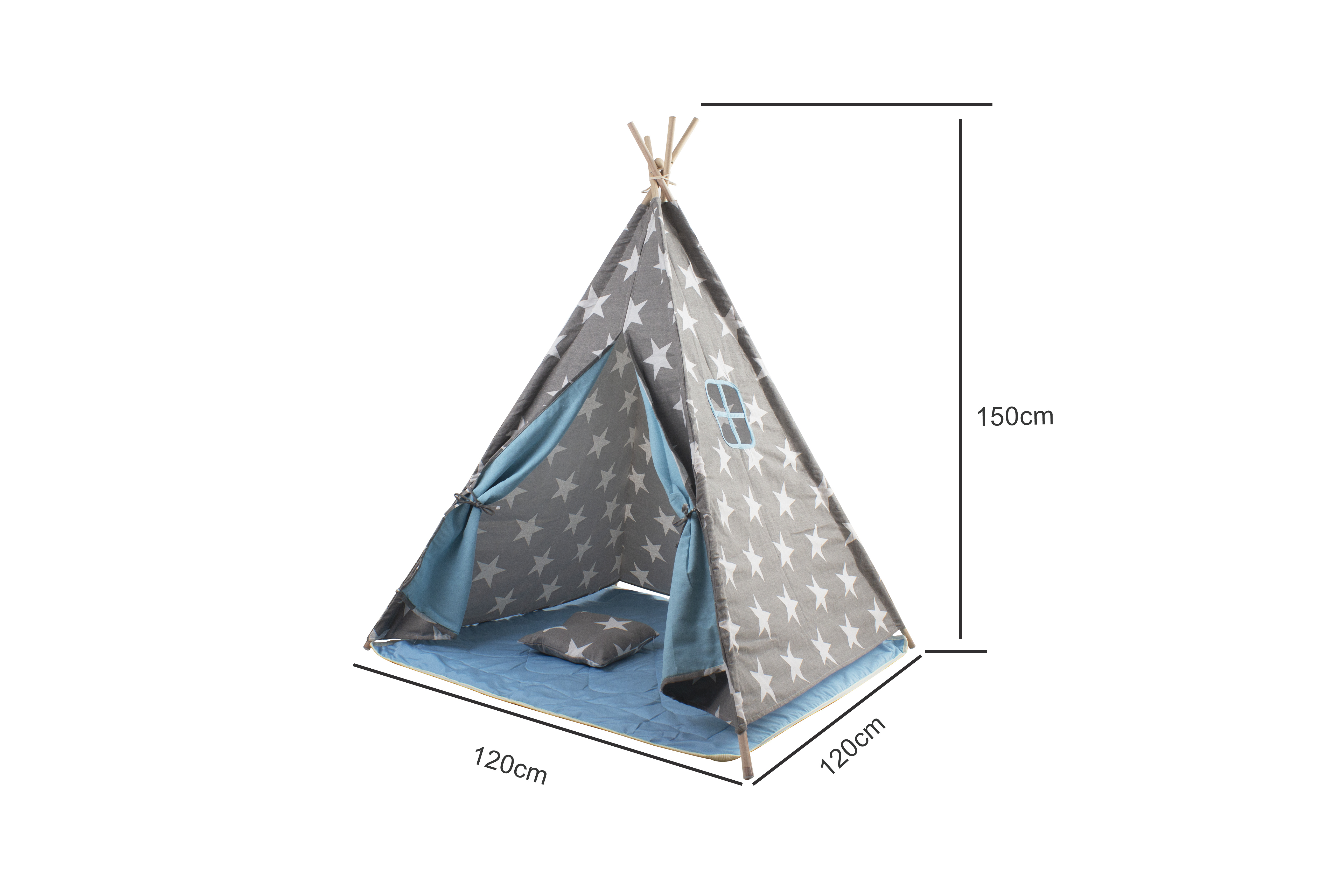 Aga4Kids Dětské Teepee Hvězdy Šedomodré