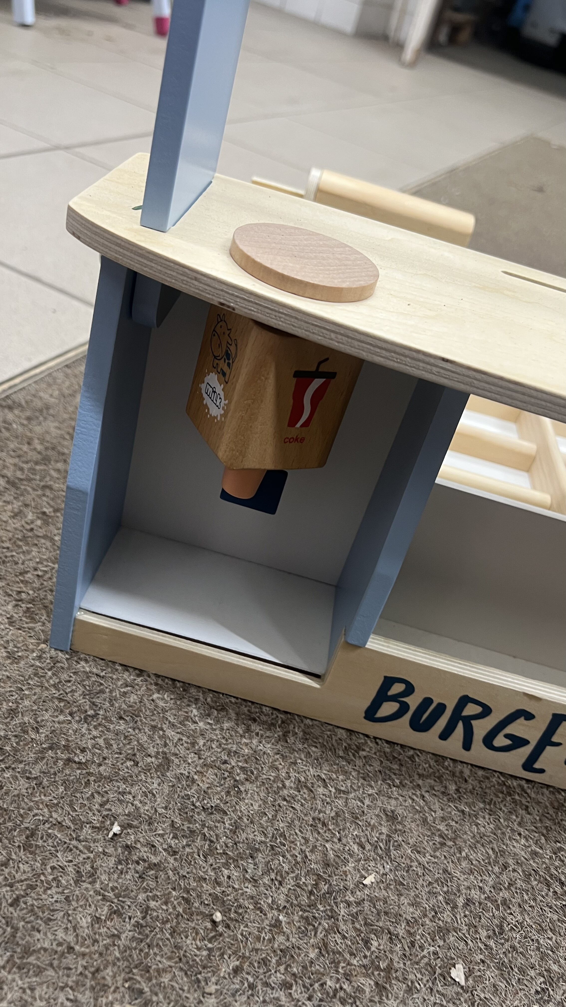 Dřevěný obchod byl použitý k reklamě, byl sešroubovaný, je zabalený v originálním obalu.