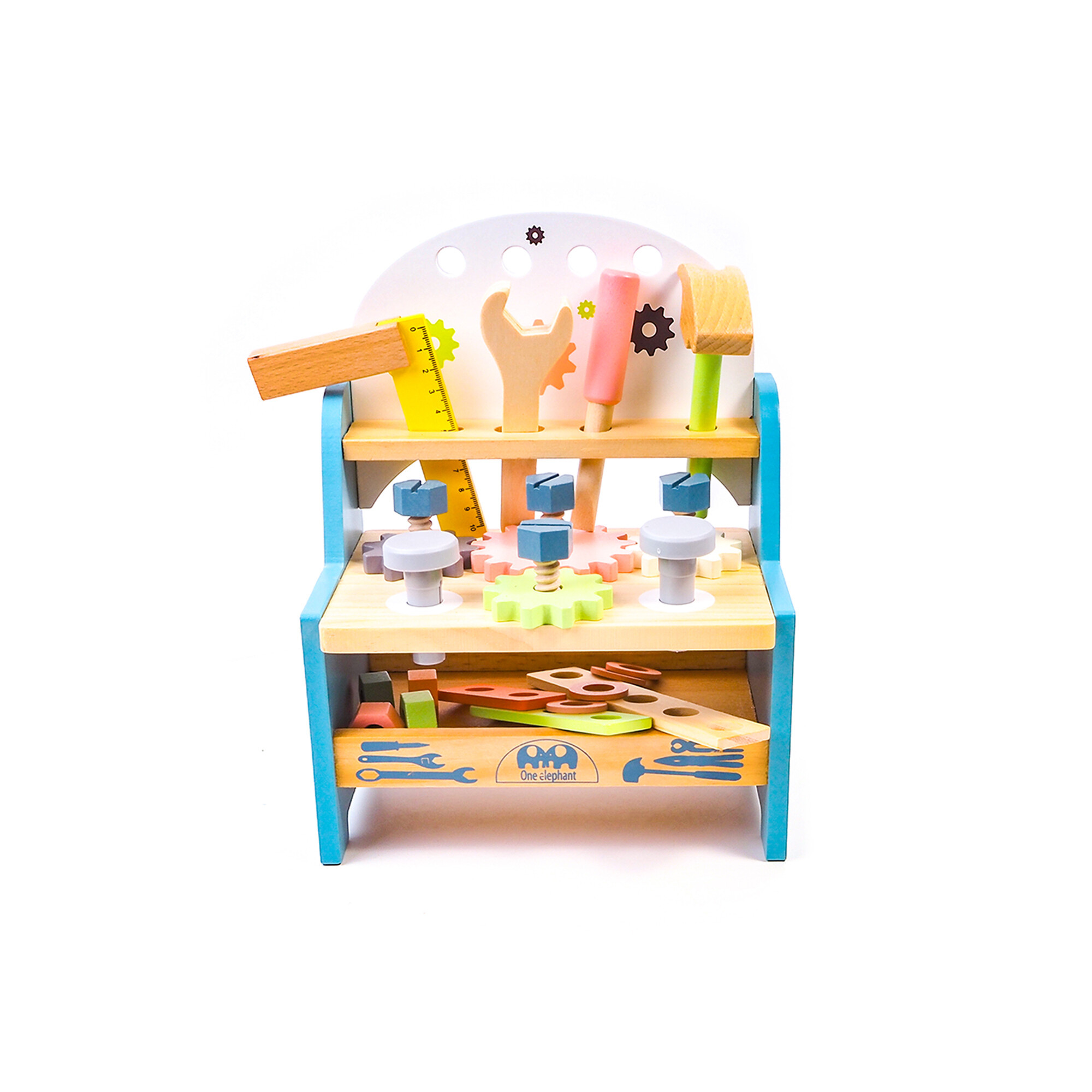 Pracovní dílna obsahuje vše, co malý kutil potřebuje - šroubovák, šroubky, kladívko, metr a další příslušenství.