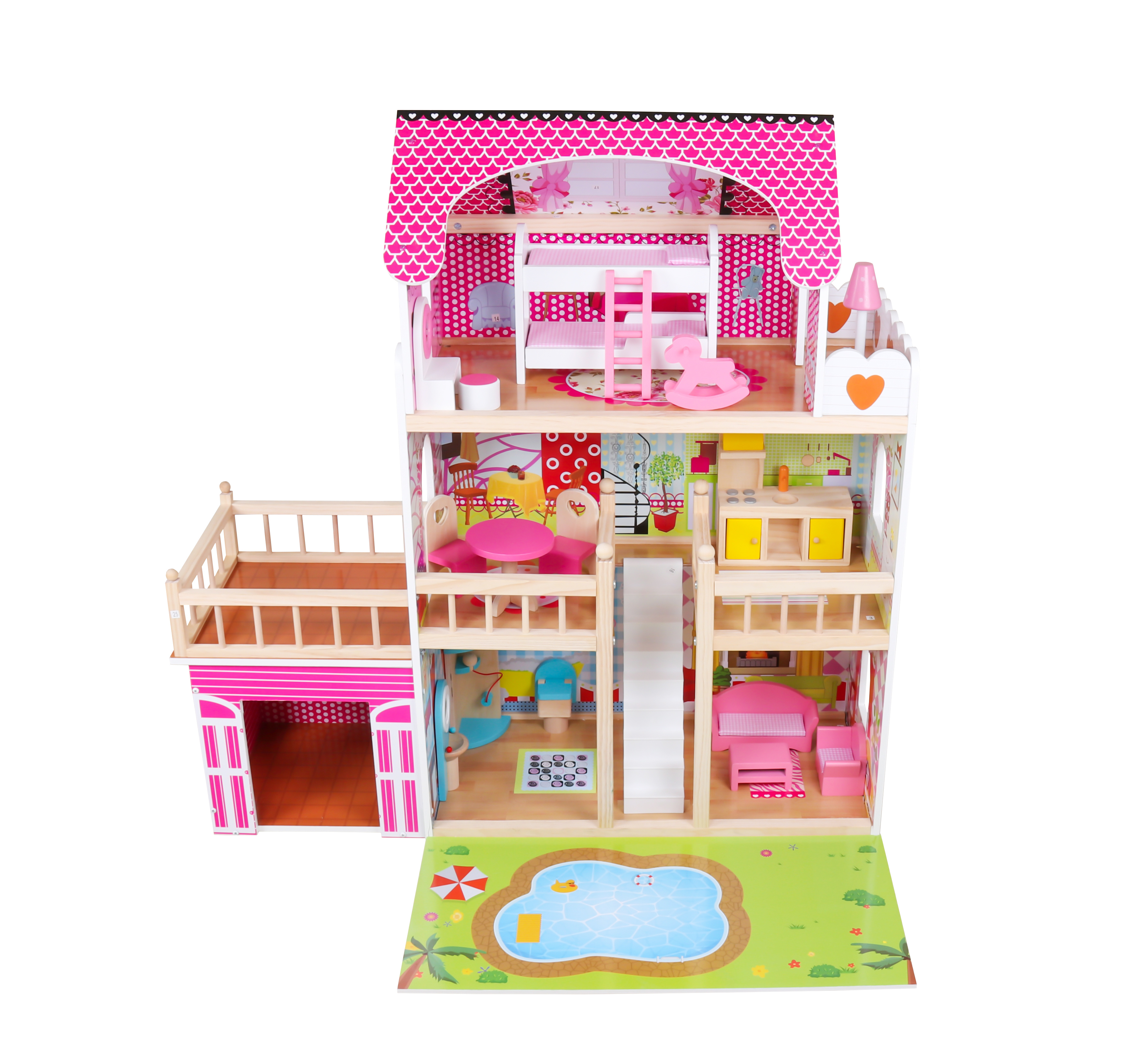 Domeček pro panenky je vyroben z kvalitního dřeva s velkou pozorností na detail a nejvyšší kvalitu provedení, bylo také dbáno na odstranění ostrých hran, které jsou zásadní pro bezpečnost Vašeho dítěte.