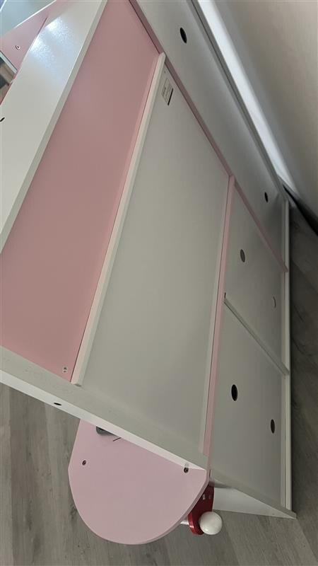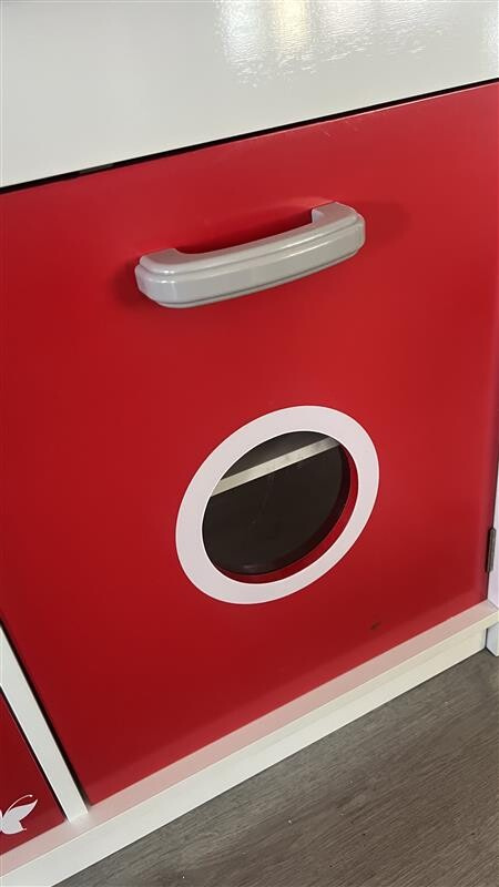 Kuchyňka byla pro účely focení smontovaná a při přepravě je trochu poškozená, mírné oděrky.