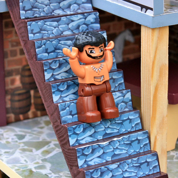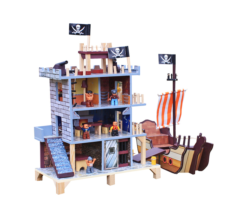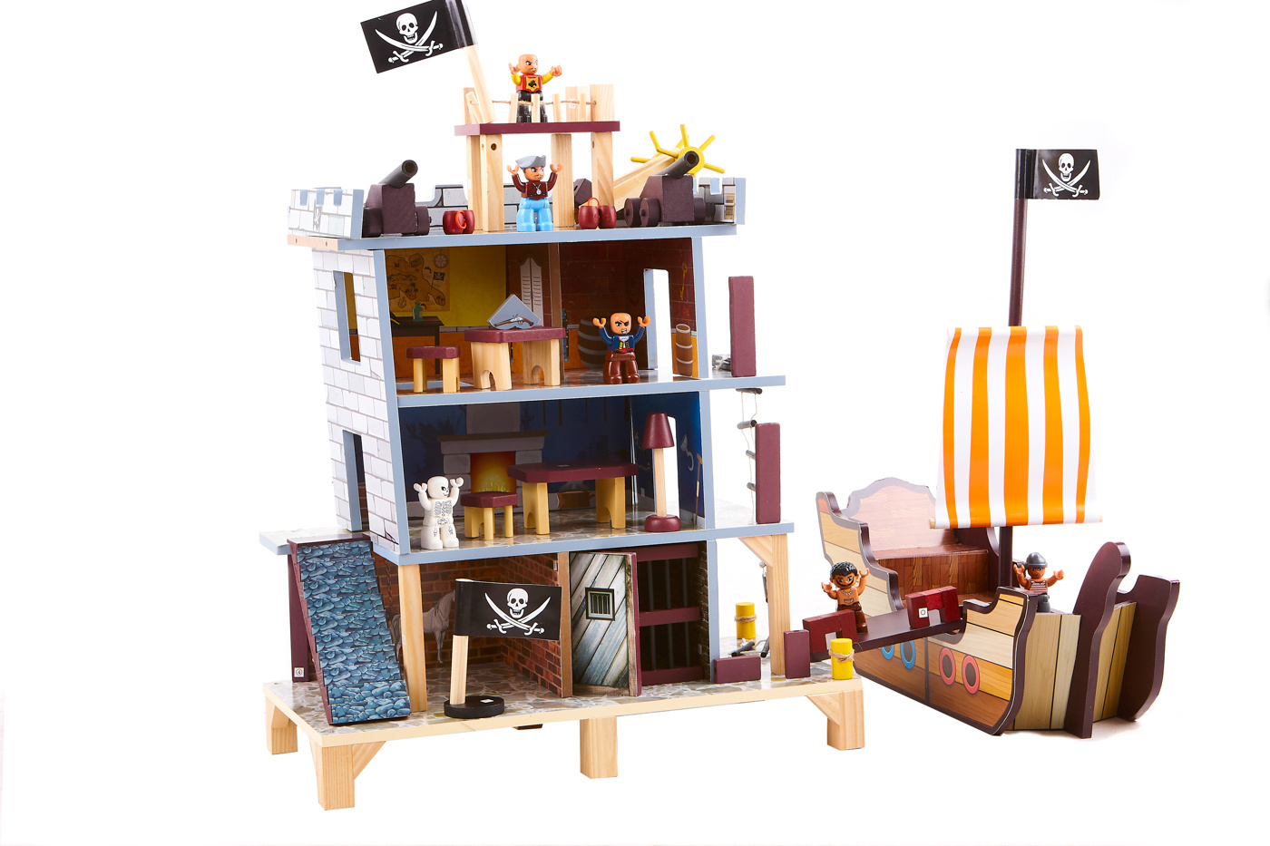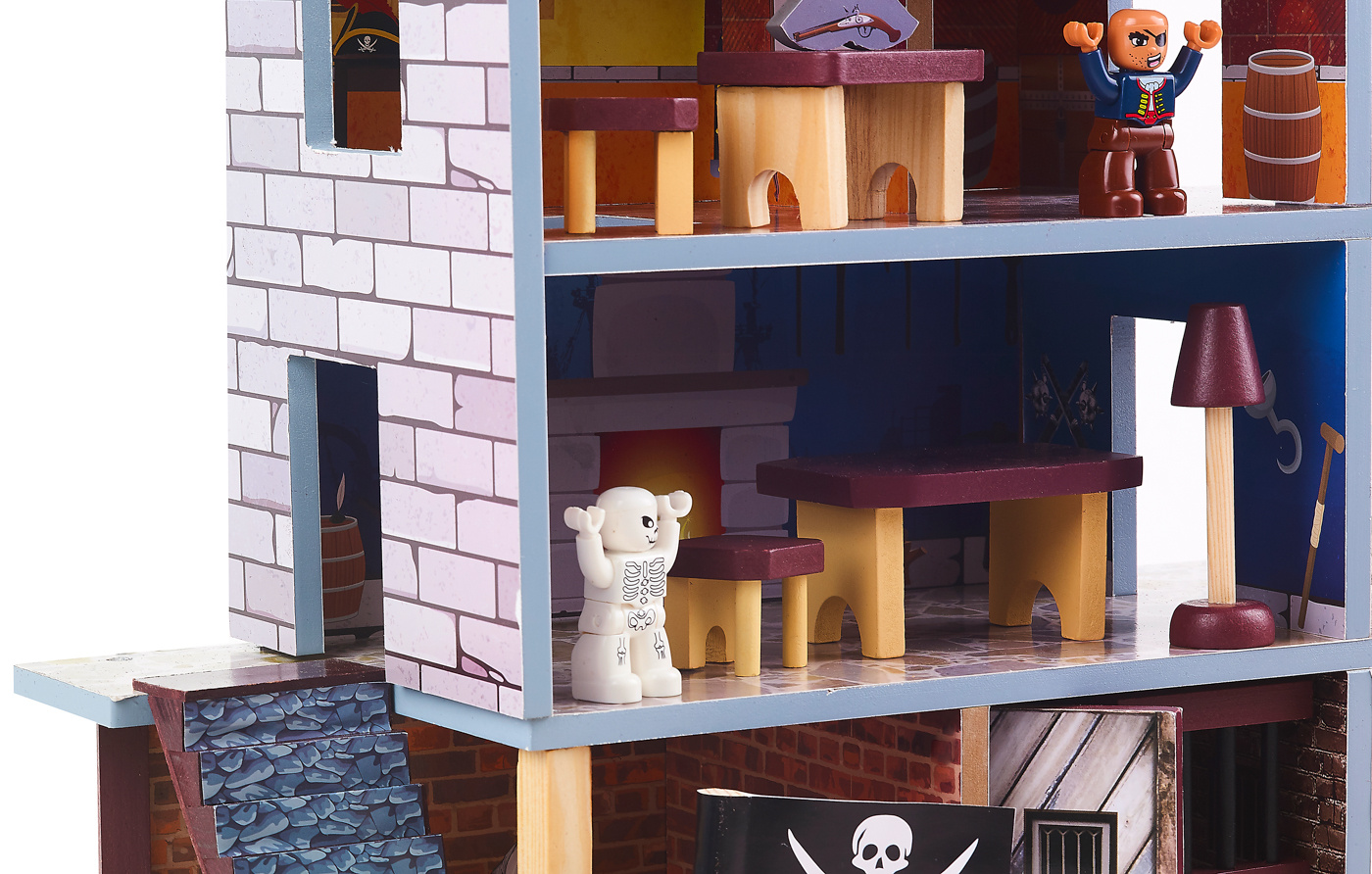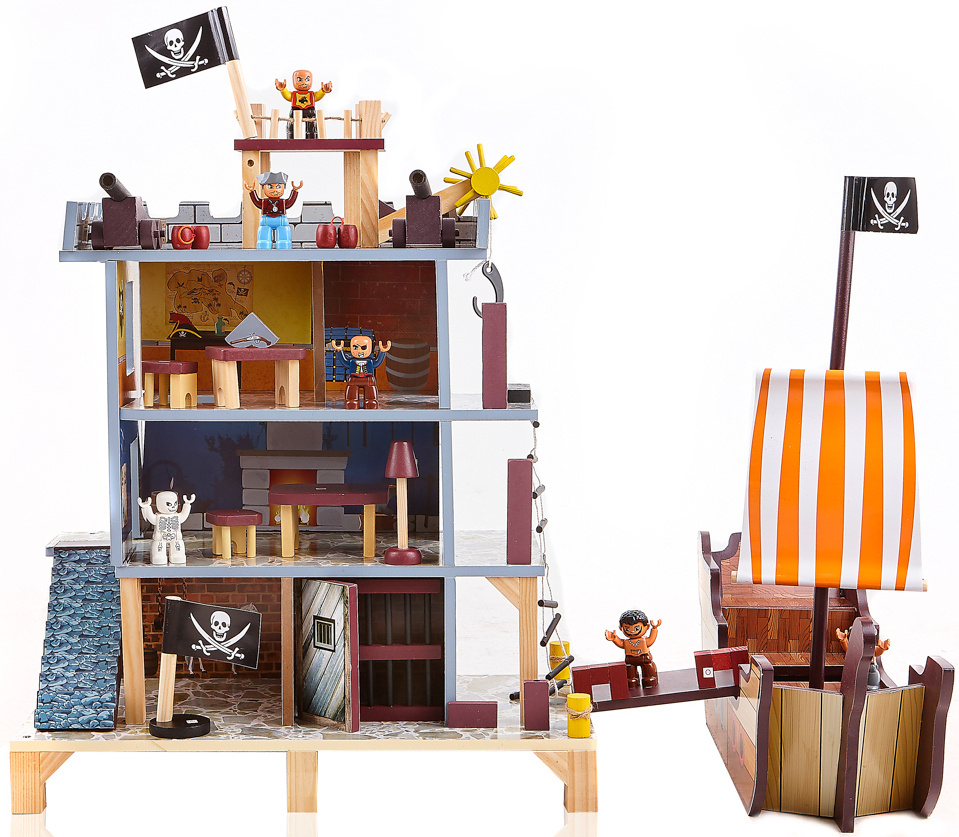 - Nechybí vězeňská cela, strážná věž s vlajkou a dvěma děly a přístav pro pirátský koráb