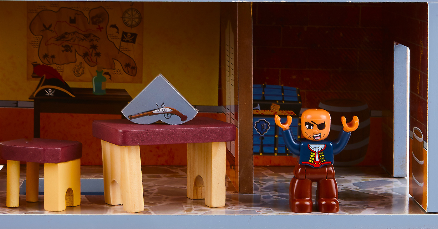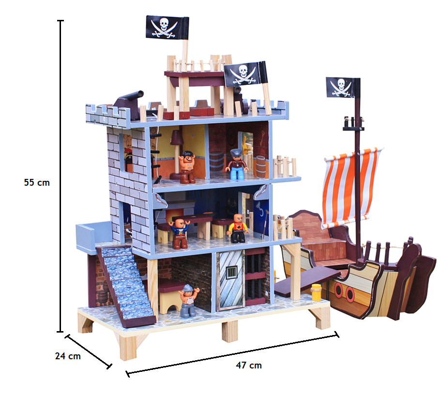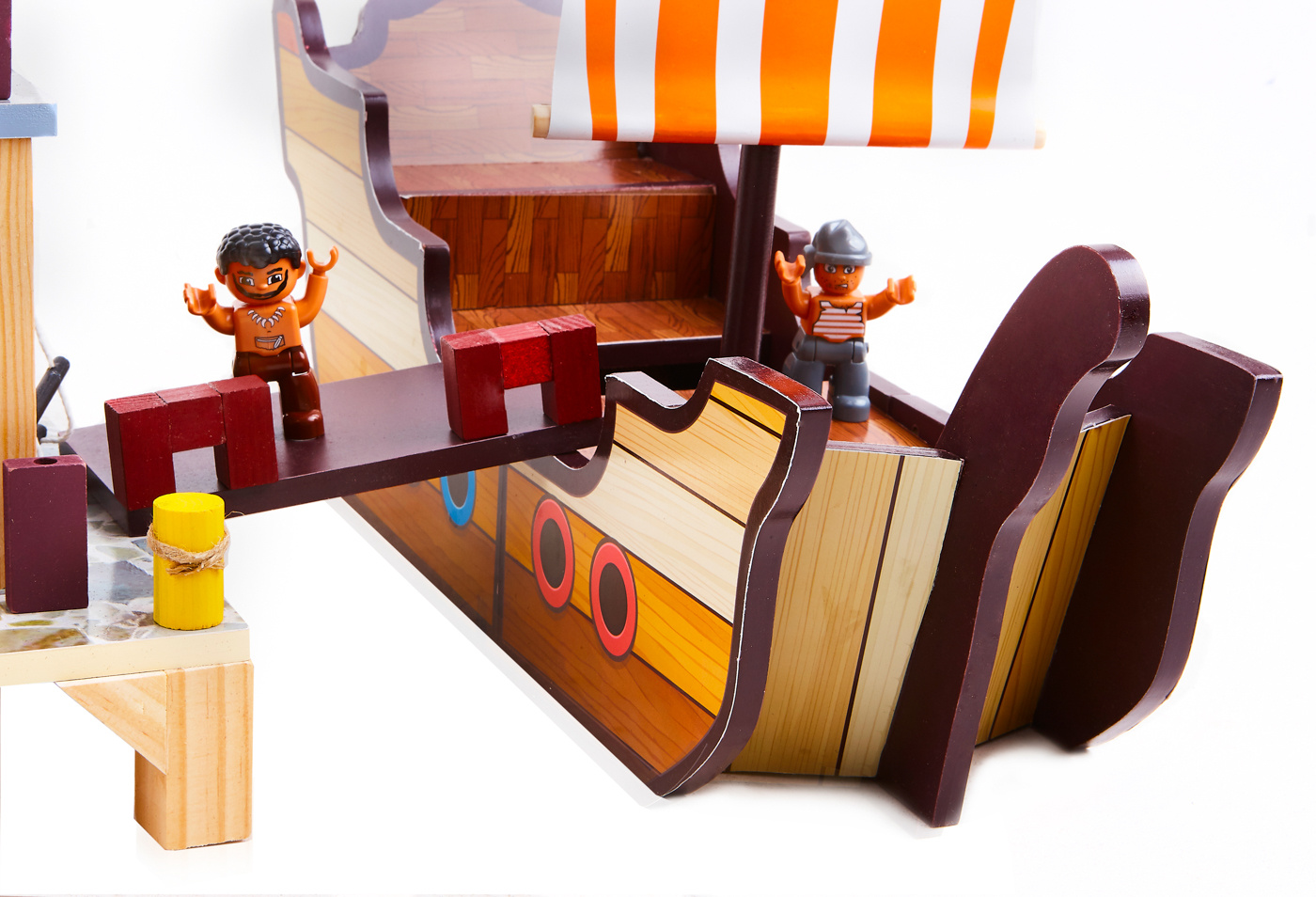 Tento pirátský hrací set se skládá ze dvou základních částí, velké pirátské lodě a průzkumné vyhlídkové věže s bohatým příslušenstvím.