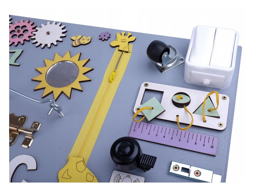 Batole také ocení ozubená kola, hodiny s pohybujícími se ručičkami, spínače, skládačky učí, jak přiřadit prvek k tvaru.