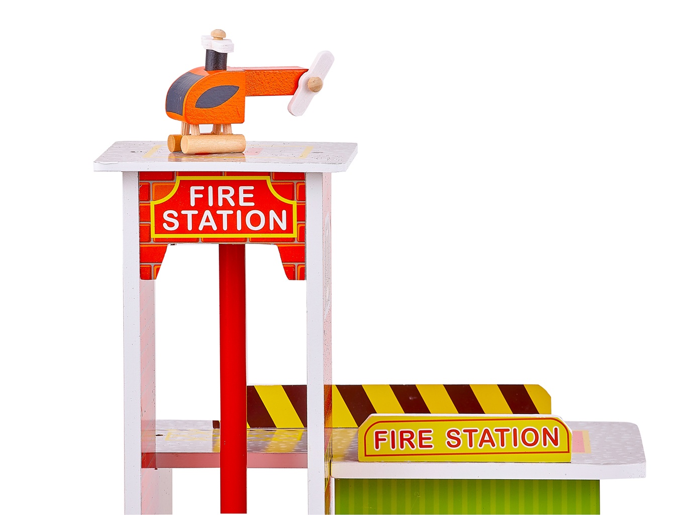 - Hrací set má tři patra propojená požární tyčí