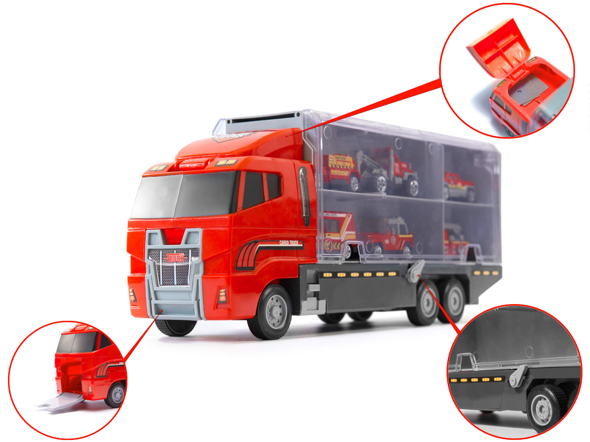 S tímto transportním vozidlem můžete svoji sadu hasičských autíček vzít s sebou!