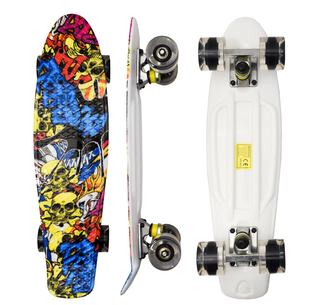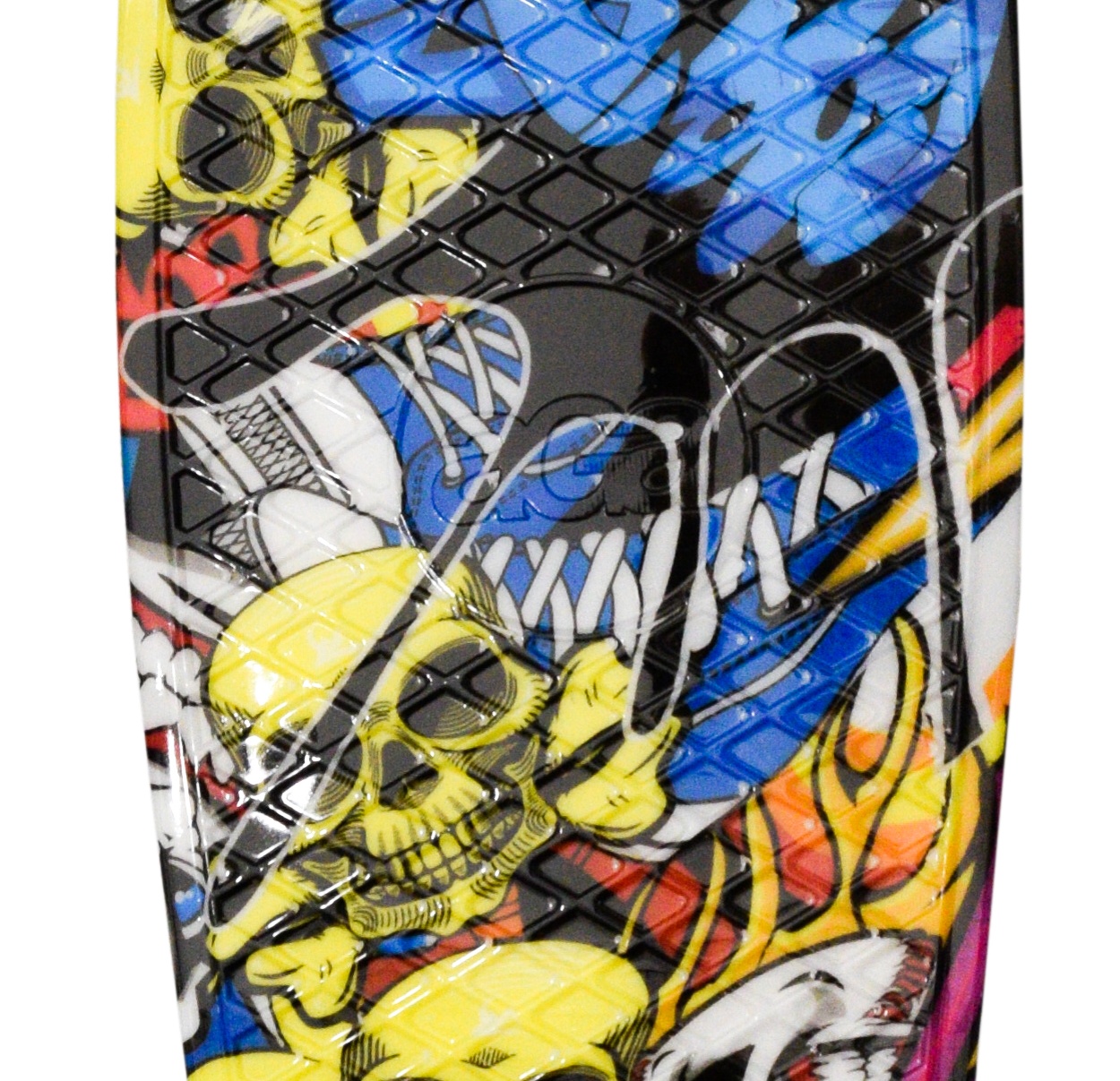 Výhodou tohoto skateboardu je praktické mřížkování na vrchní straně desky, které zamezuje nechtěnému uklouznutí nohy z desky.