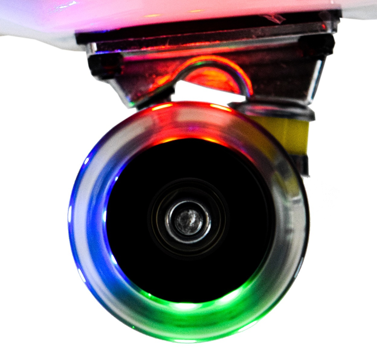 Skateboard je vybaven svítícími kolečky, která začnou svítit, jakmile jsou uvedena do pohybu.