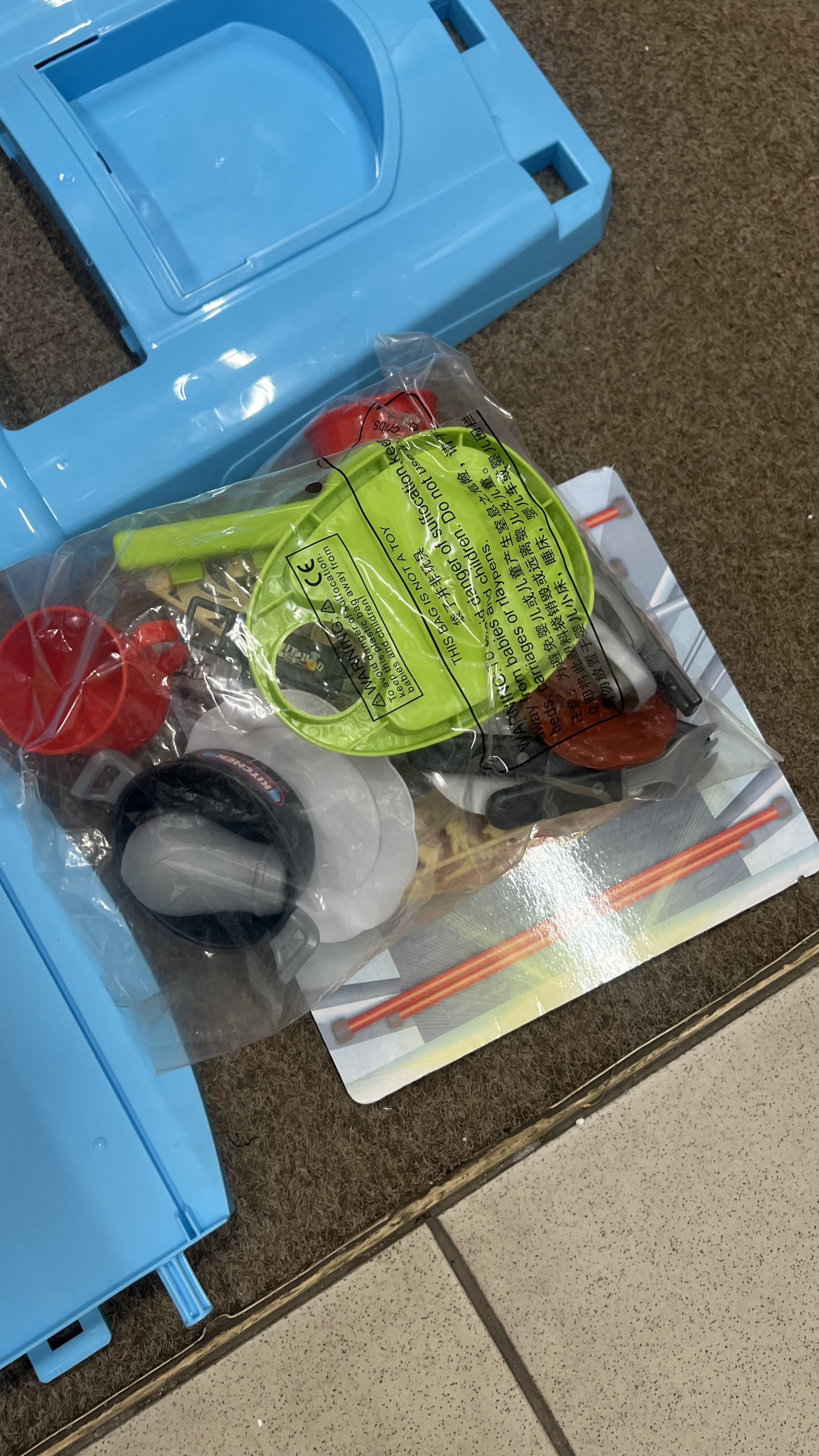 - Obsahuje spoustu různého příslušenství jako jsou hrnec, pánvička, pokličky, talíře, kuchyňské náčiní, hrneček, potraviny aj.