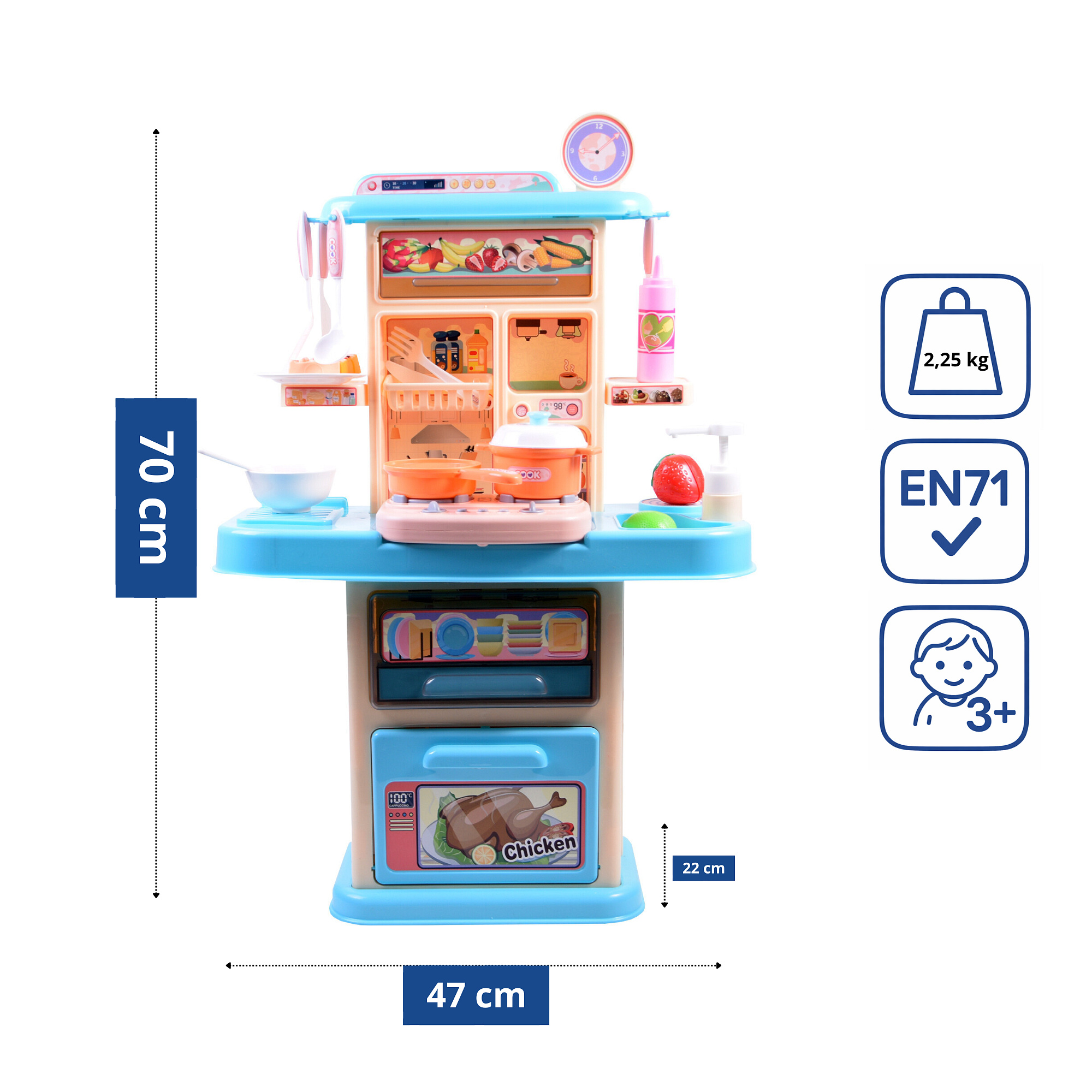Tato kuchyňka je skvělým dárkem pro každé dítě, které miluje hraní na vaření. Je vhodná pro děti od 3 let a poskytne hodiny zábavy a učení. Díky svému atraktivnímu designu a realistickým funkcím se stane oblíbenou hračkou každého malého kuchaře.