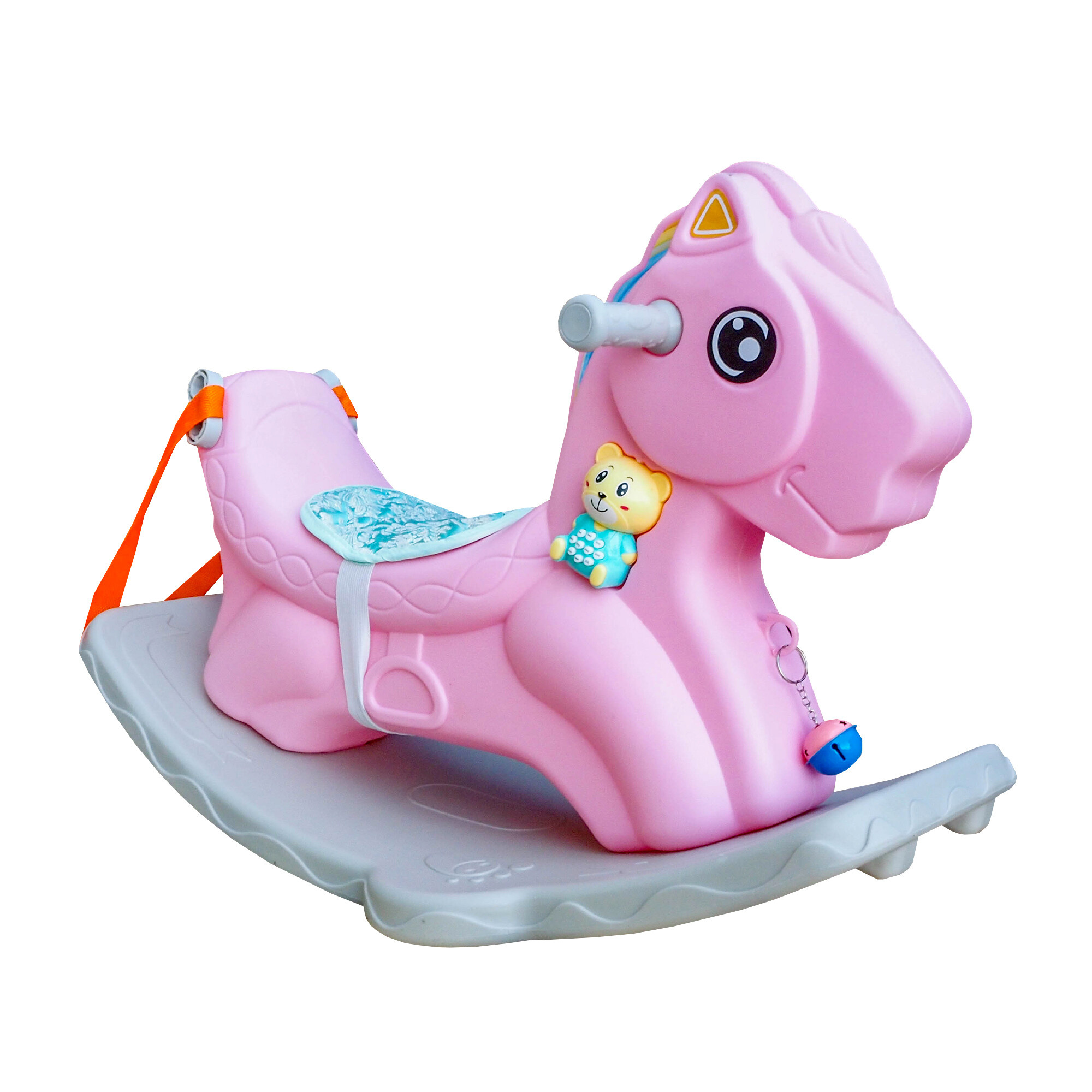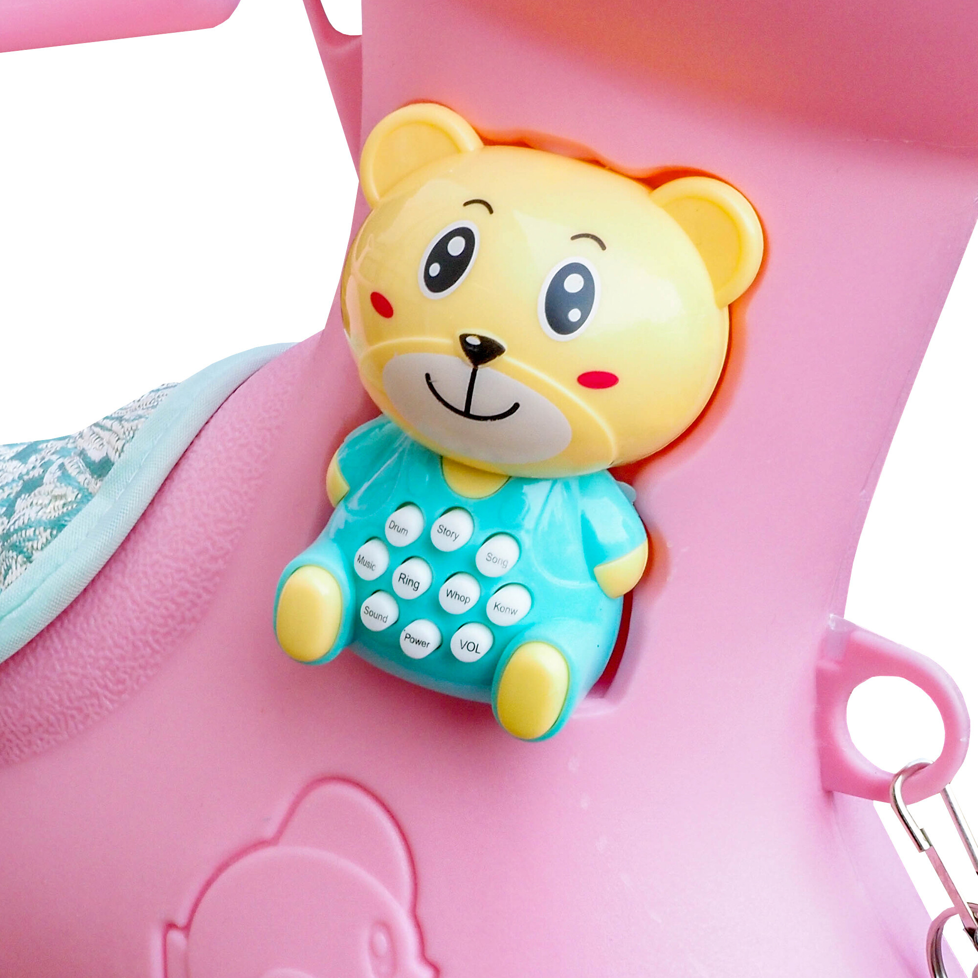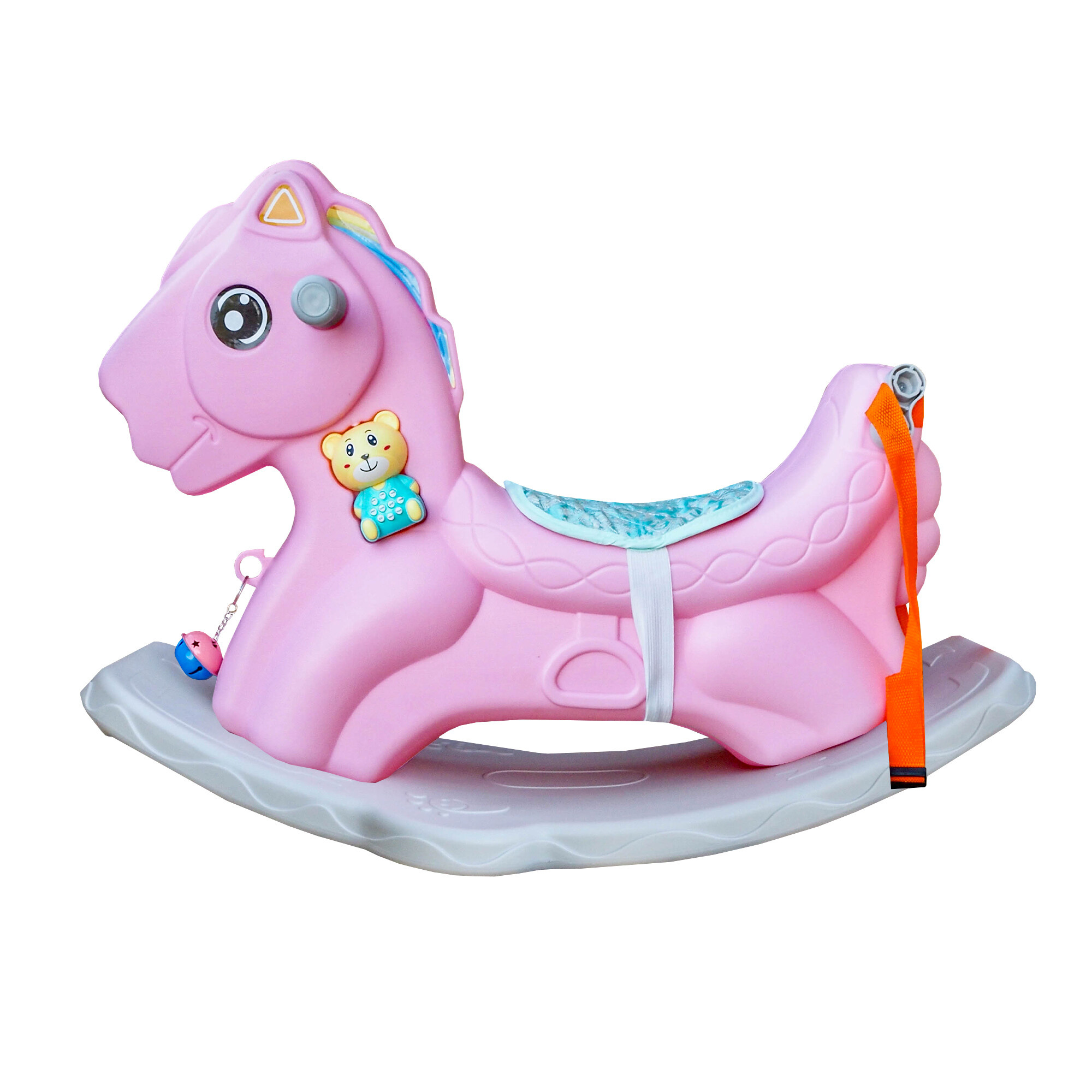 Na krku koníka se nachází interaktivní medvídek, který vydává různé zvuky a melodie. Tato hračka nejenže zaujme pozornost vašeho dítěte, ale také stimuluje jeho sluchové vnímání a podporuje rozvoj hudebního cítění.