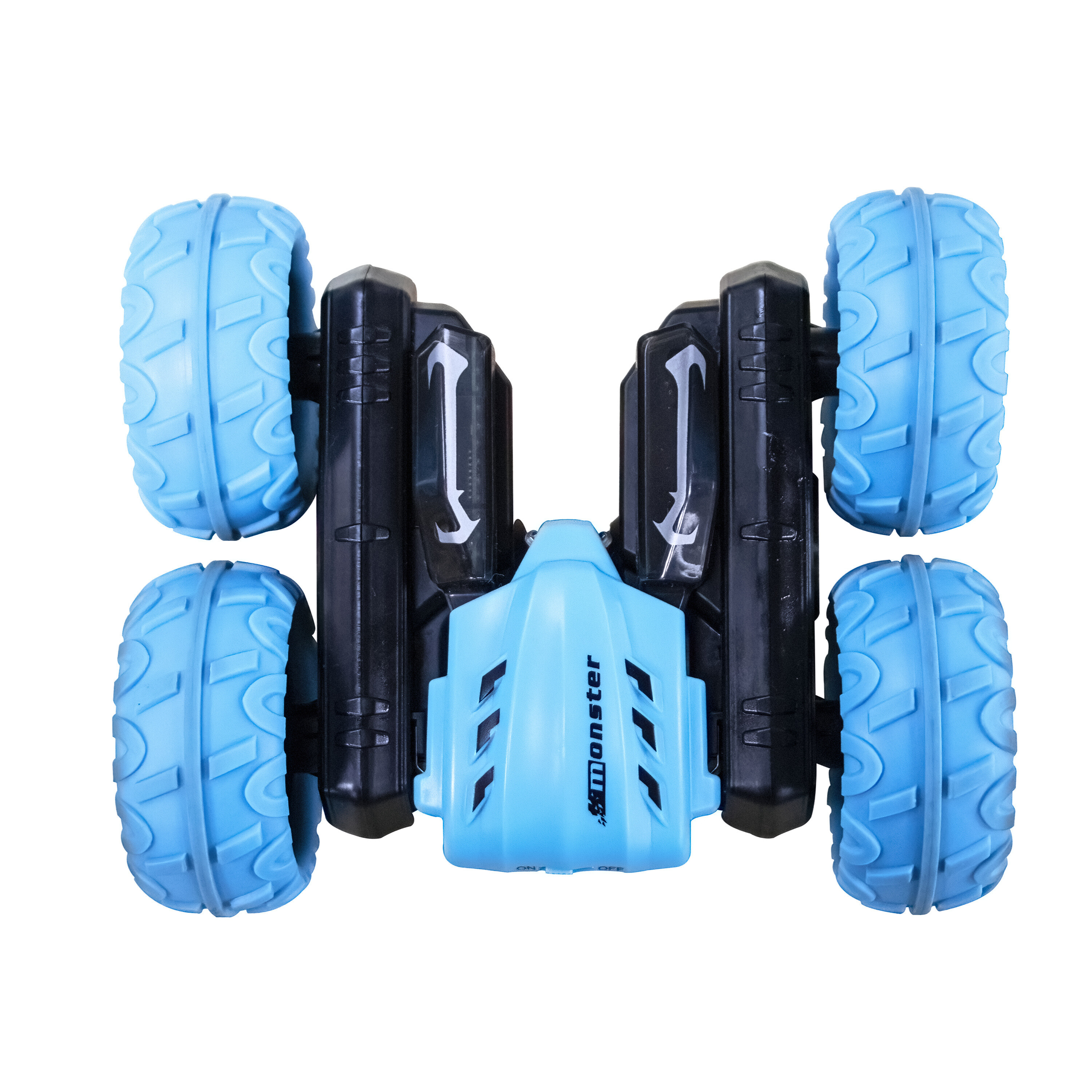 RC oboustranné autíčko zaručuje fantastickou zábavu. Speciální design tohoto modelu umožňuje otáčení o 360 stupňů. Model si navíc poradí s jakoukoli překážkou, která mu stojí v cestě. Zvládne i různé povrchy, může jezdit po podlaze, koberci, ale i v trávě. Autíčko je vybaveno extra měkkými gumovými pneumatikami s malými výstupky, které zaručují, že bude model pevně držet na zemi.