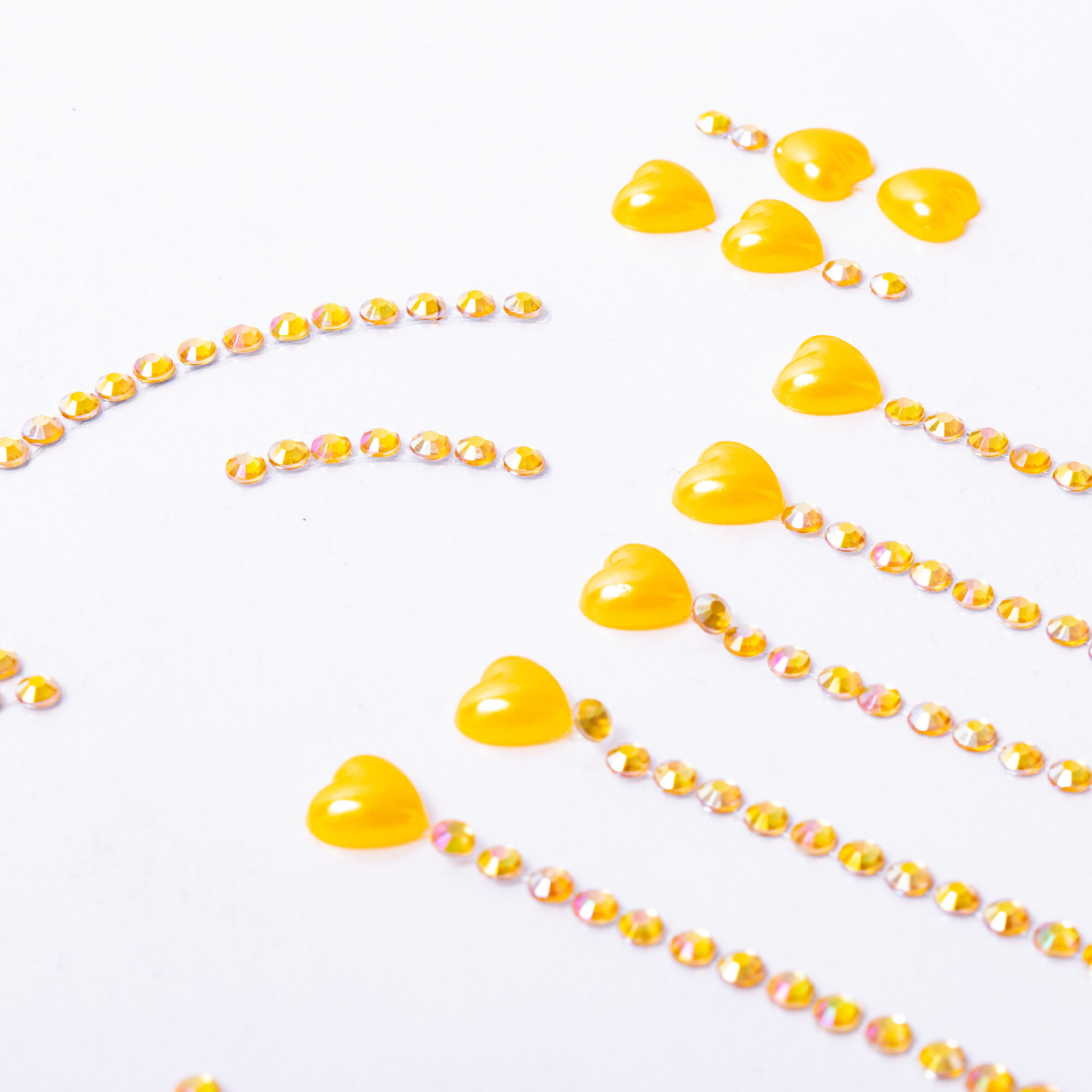 Použití našich kamínků je velmi jednoduché. Stačí je odlepit z podkladového papíru a přilepit na požadované místo. Můžete je použít na obličej, vlasy, nehty nebo jakoukoli jinou část těla. Kamínky pevně drží na místě, ale zároveň je lze snadno odstranit bez poškození pokožky nebo vlasů. Díky tomu můžete měnit svůj vzhled podle nálady a příležitosti.