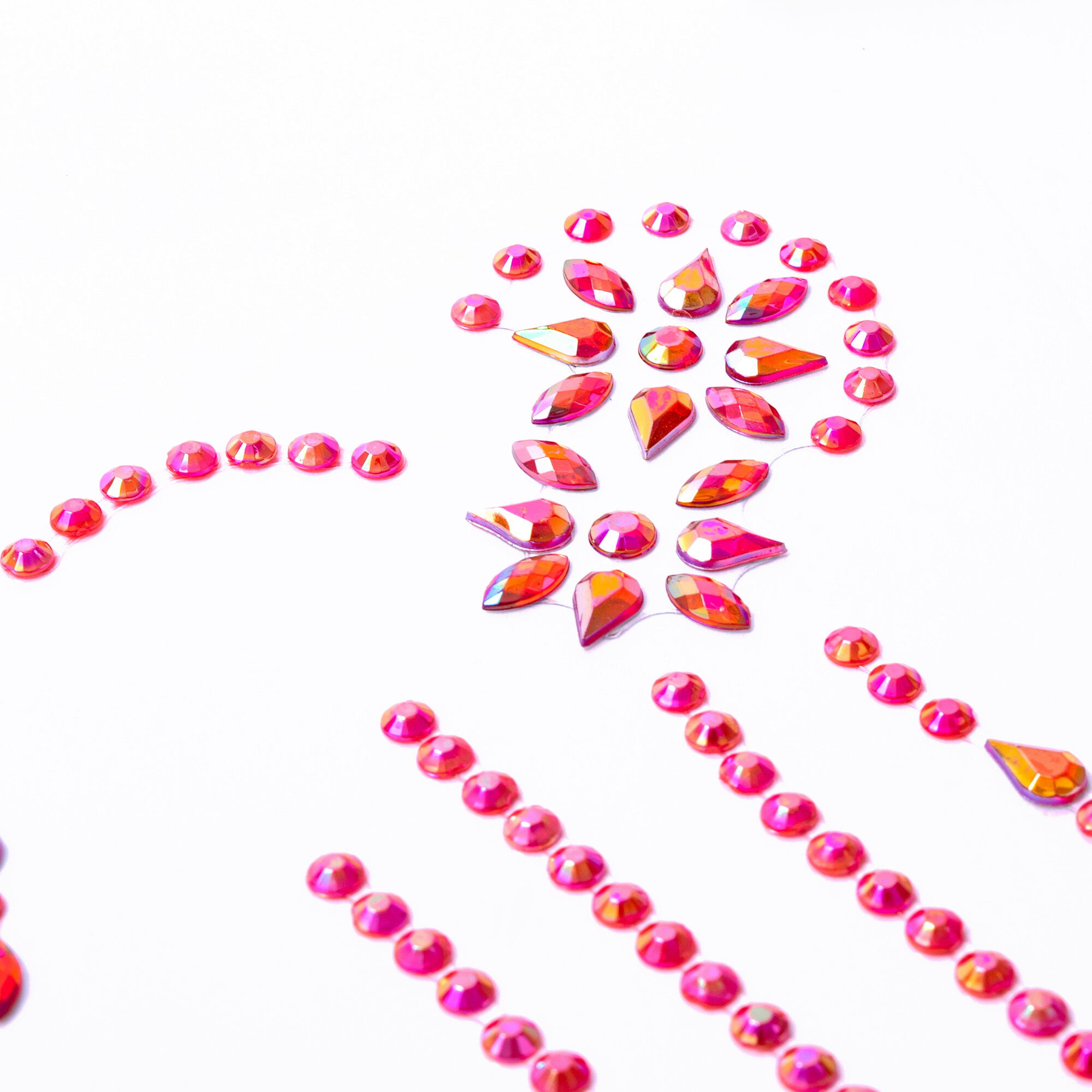 Použití našich kamínků je velmi jednoduché. Stačí je odlepit z podkladového papíru a přilepit na požadované místo. Můžete je použít na obličej, vlasy, nehty nebo jakoukoli jinou část těla. Kamínky pevně drží na místě, ale zároveň je lze snadno odstranit bez poškození pokožky nebo vlasů. Díky tomu můžete měnit svůj vzhled podle nálady a příležitosti.