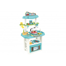 - Obsahuje spoustu různého příslušenství jako je zubní pasta, kartáček, kleště, teploměr, zrcátko, nůžky, dřez s tekoucí vodou a mnoho dalších