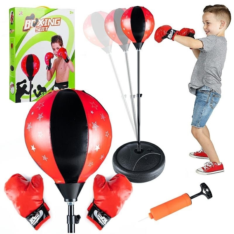 Tréninková sada na box sestávající z boxovací hrušky na pružině a rukavic. Hruška je upevněna na ocelovém výložníku. Přiložené rukavice jsou v univerzální velikosti, vhodné pro dětskou ruku. Rukavice mají tlumicí vrstvu na pěstích. Boxovací hruška je nafouknutá. V sadě se navíc nachází sada šroubů, podložek a prvků potřebných k jeho montáži. Stabilní základna s možností zatížení vodou nebo pískem. Rozměry: - výška hrušky nastavitelná 70 - 110 cm - průměr hrušky: cca. 20 cm - průměr základny: 33,5 cm - pumpička k hrušce a montážní šrouby a klíč v sadě rozměry balení: 47x36,5x7,5 cm Počet kusů. na paletě: 80 Produkt zabalený v dodatečné krabici - připravený k odeslání.
